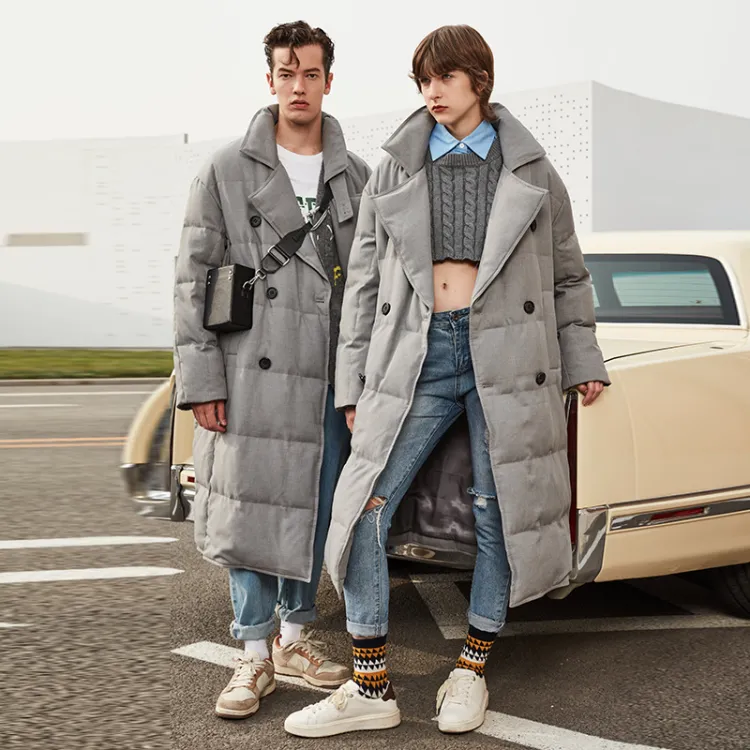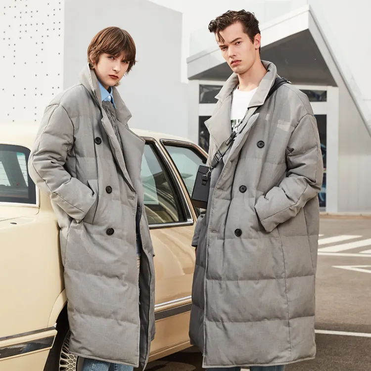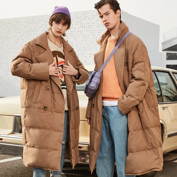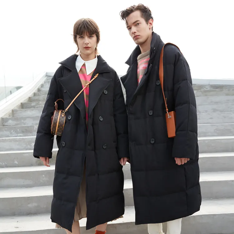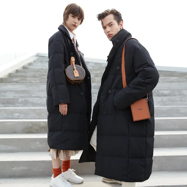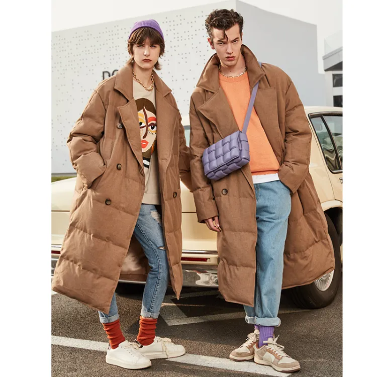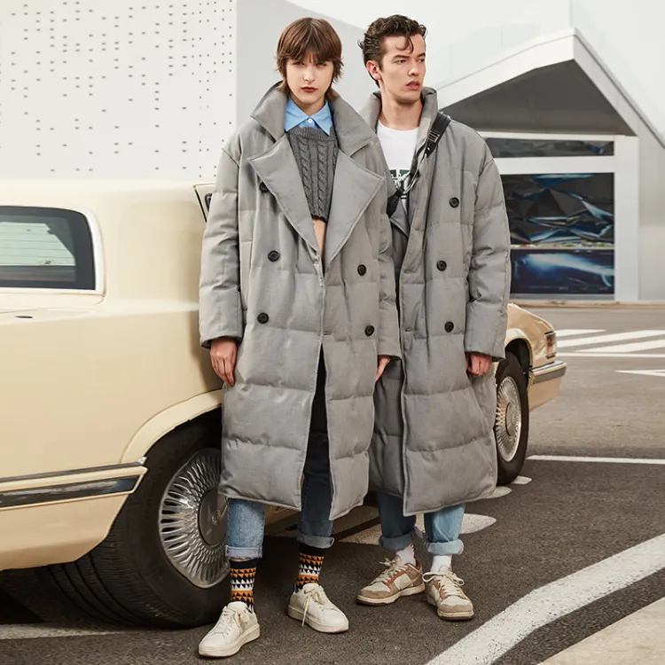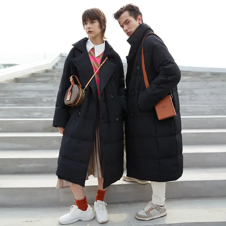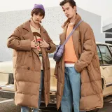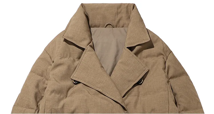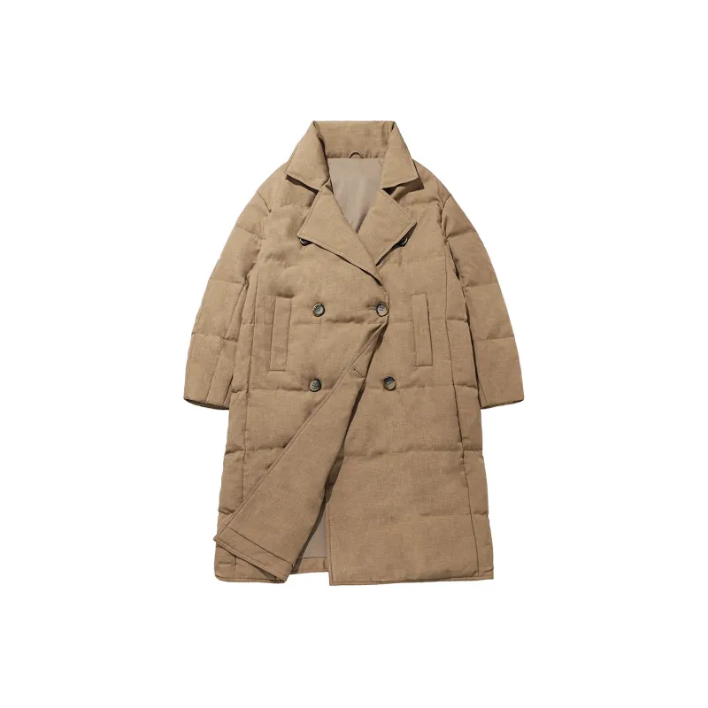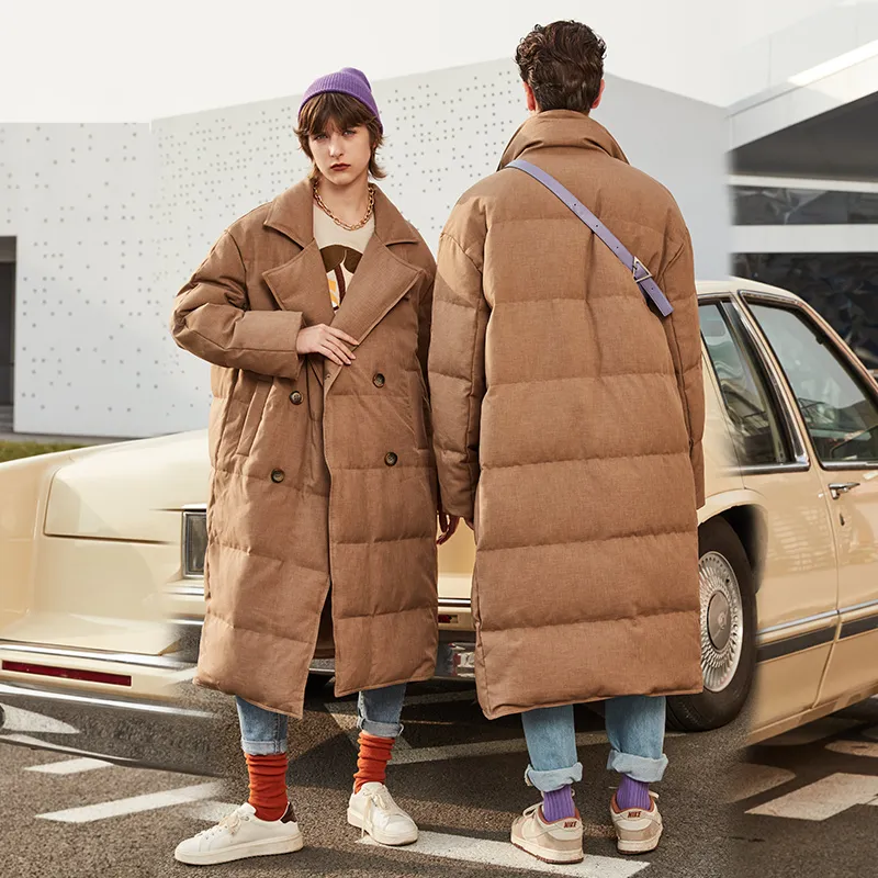 DENGYAN Однотонный Отложной воротник Свободный крой MID Длина Пуховая куртка Унисекс