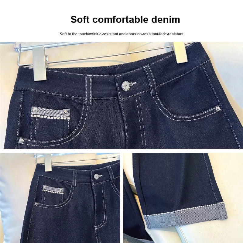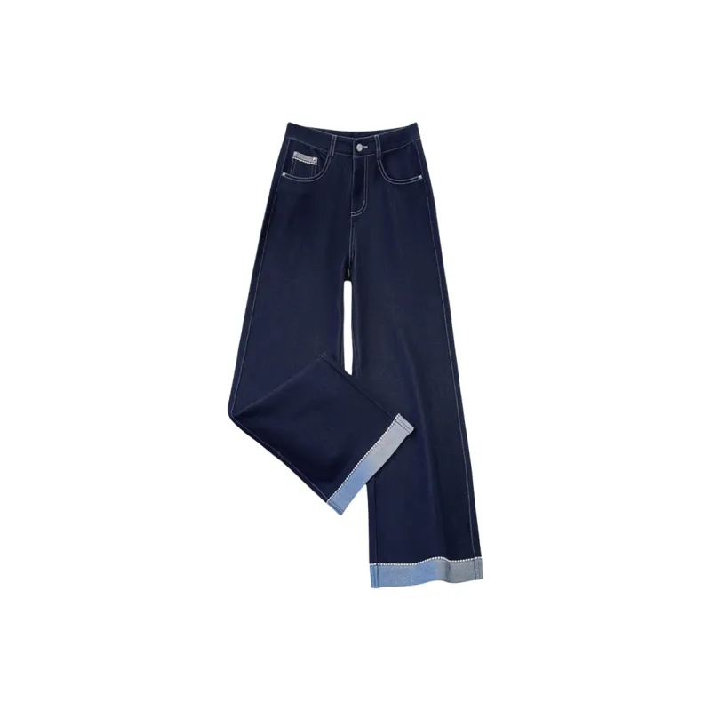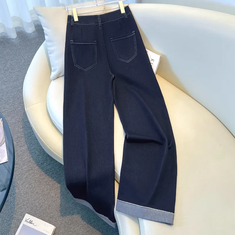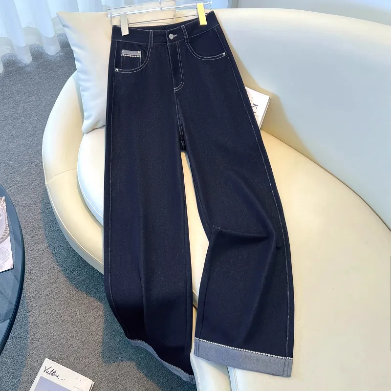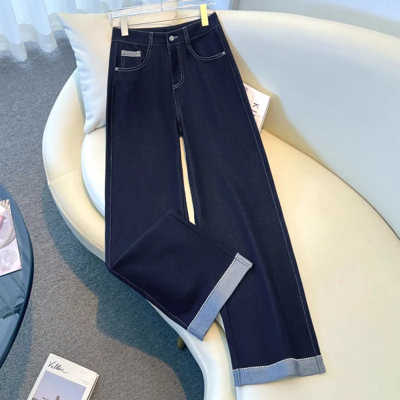 Деним Широкие брюки Женские Весна-Осень 2025 Корейский стиль Утягивающий Элегантный Straight Брюки