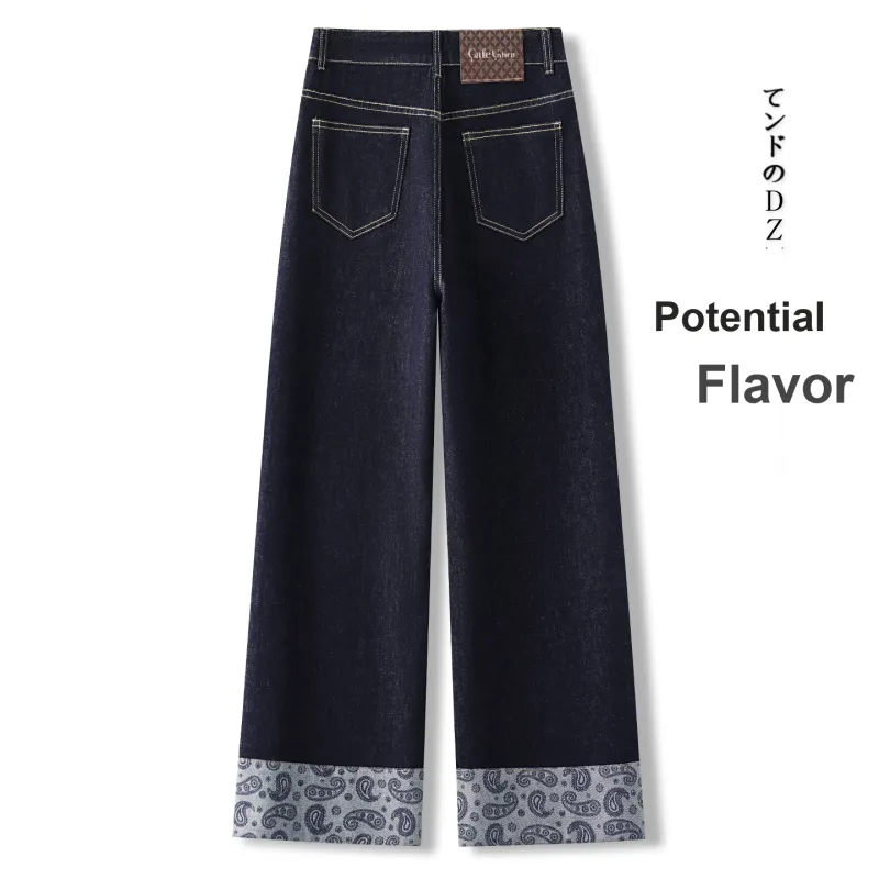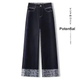 Деним Широкие Брюки Женские Весна Осень 2025 Свободный крой Утягивающие ВЫСОКОЕ ПОДКЛОНЬЕ Этаж Длина (Размер в длину) Прямой крой Брюки