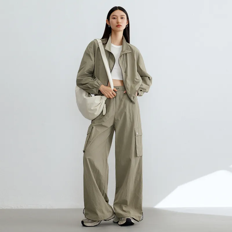 DESIGNICE Карго Брюки Женские Серый Зеленый