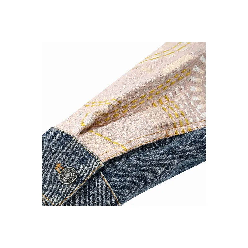 Основная ткань: 56,6% хлопок, 31,6% полиэстер, 8,8% регенерированное целлюлозное волокно, 3,0% другие волокна; Подкладка рукава: 80,7% полиэстер, 19,3% хлопок; Отделка: Основная ткань: 100% хлопок; Нити вышивки: 100% полиэстер
