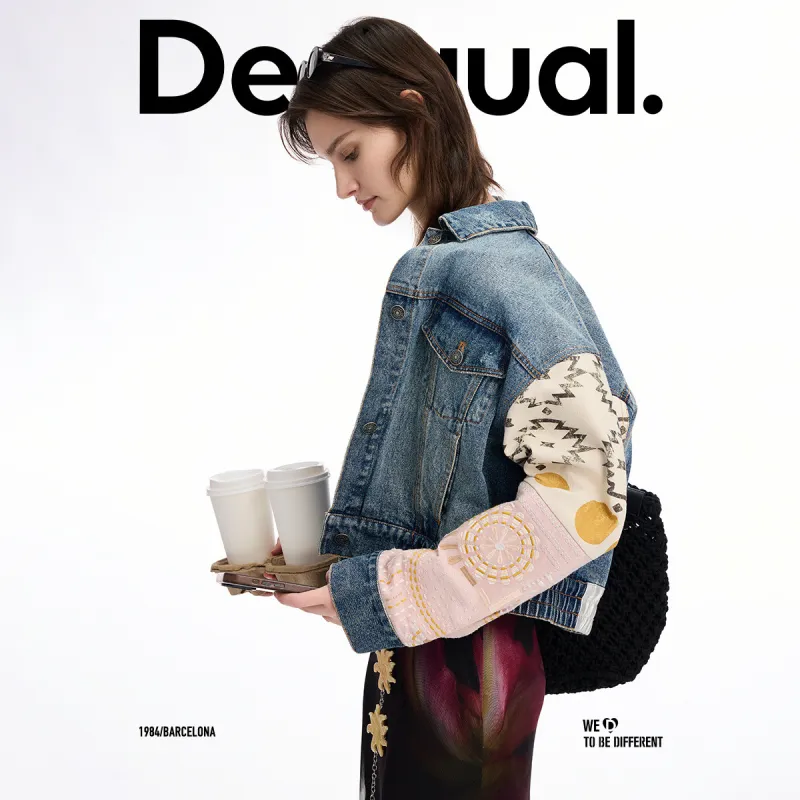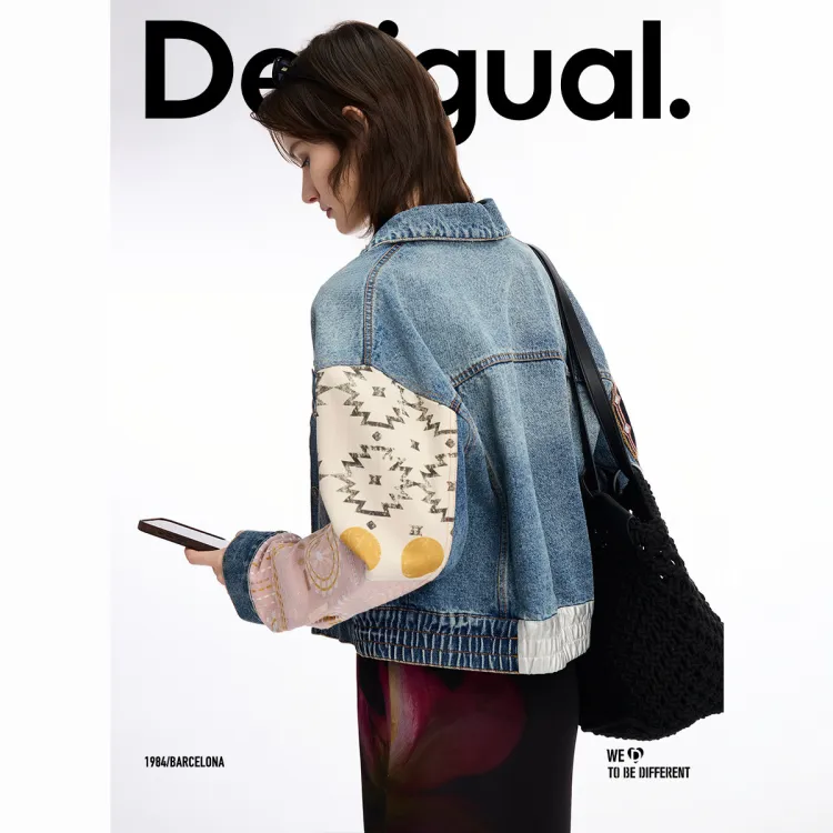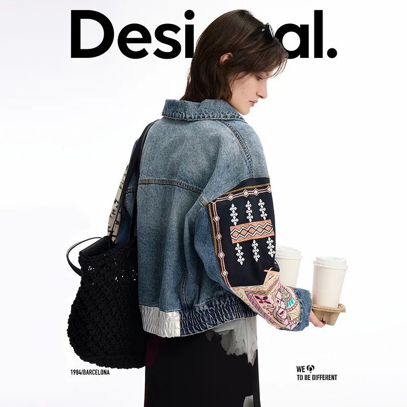Desigual Средне-голубой деним женские джинсовые куртки