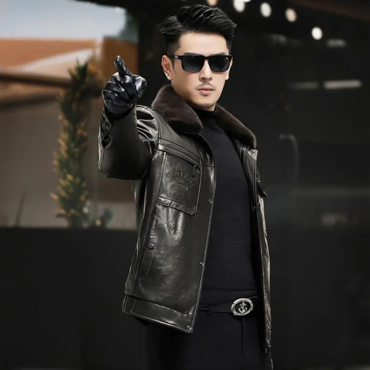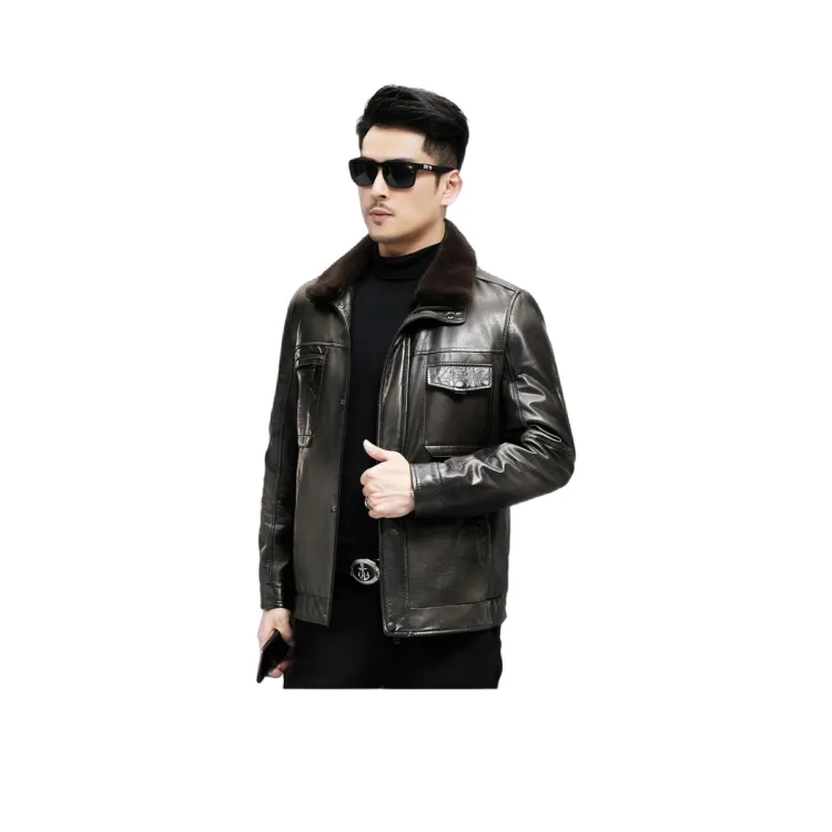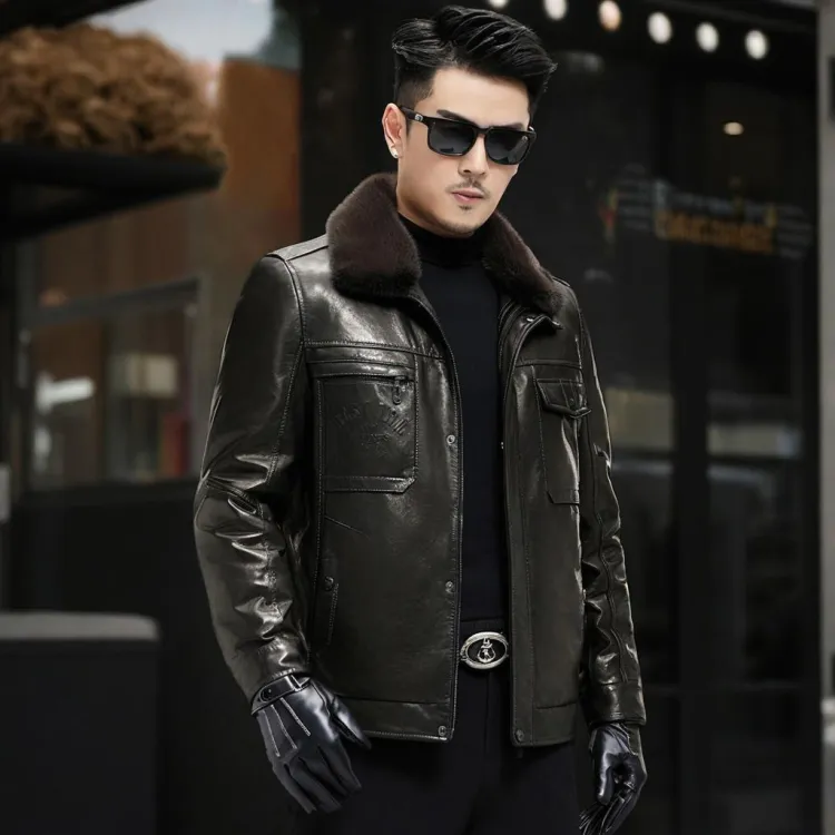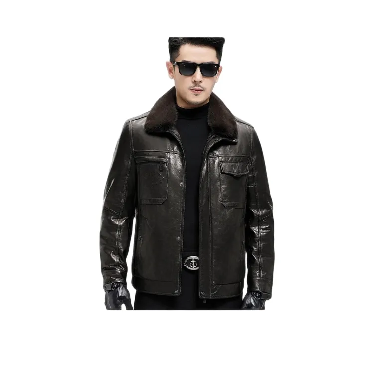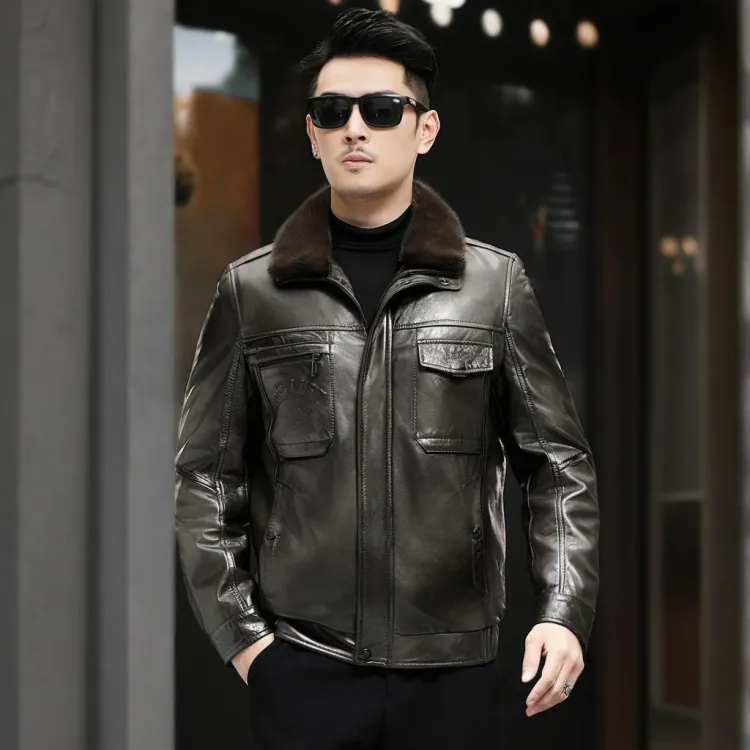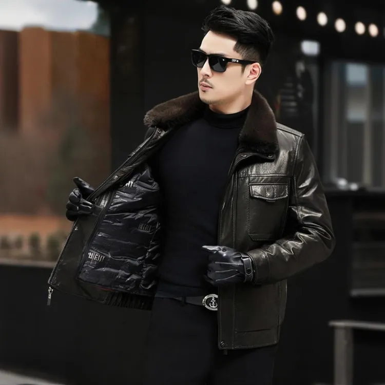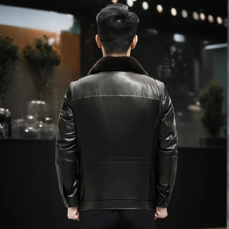 Devanro Натуральная кожа Куртка Мужская Классическая Черная
