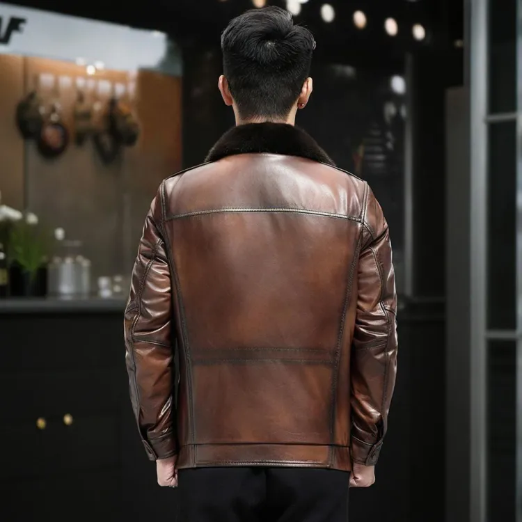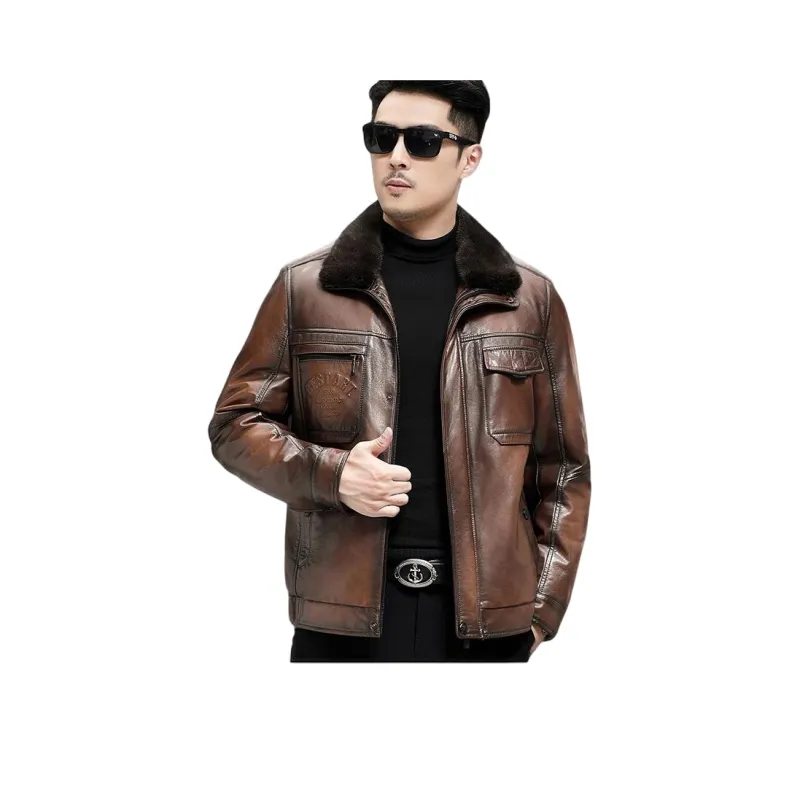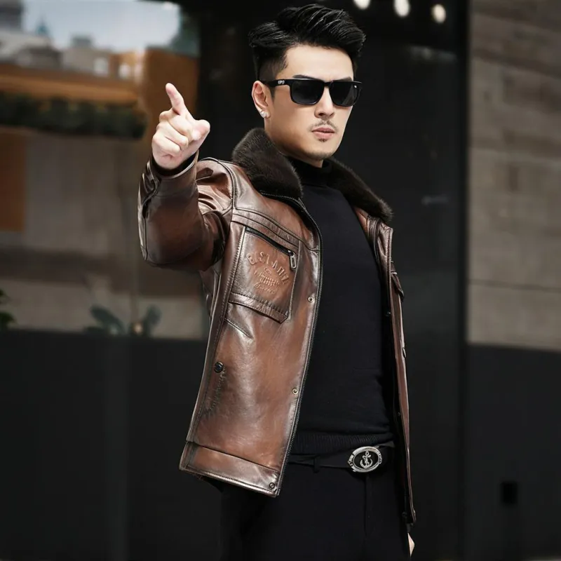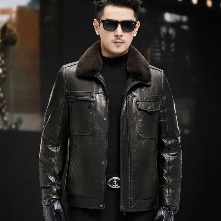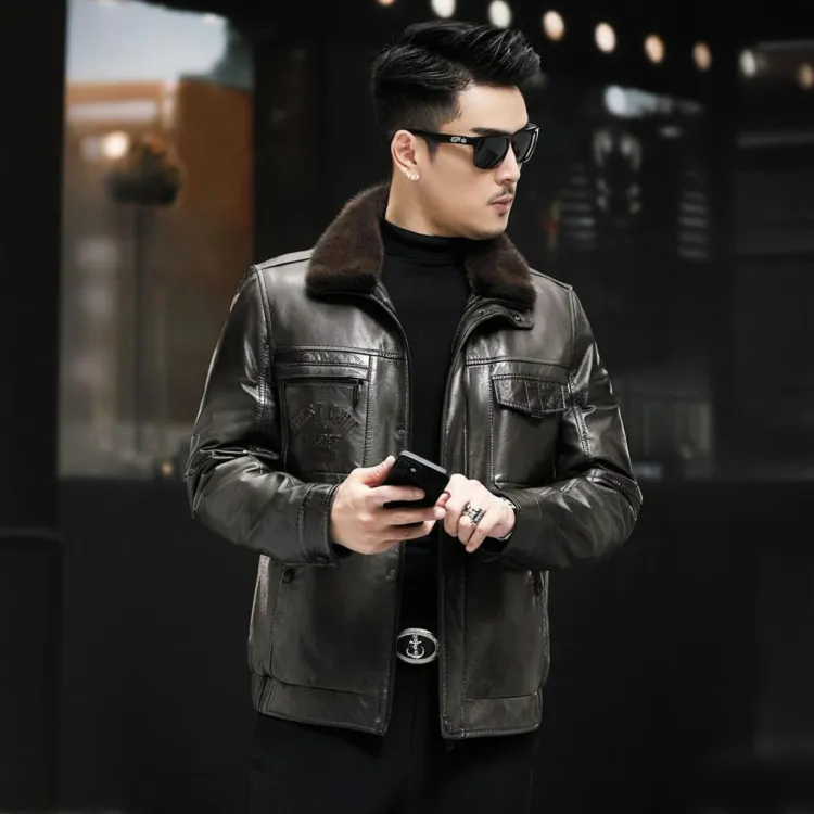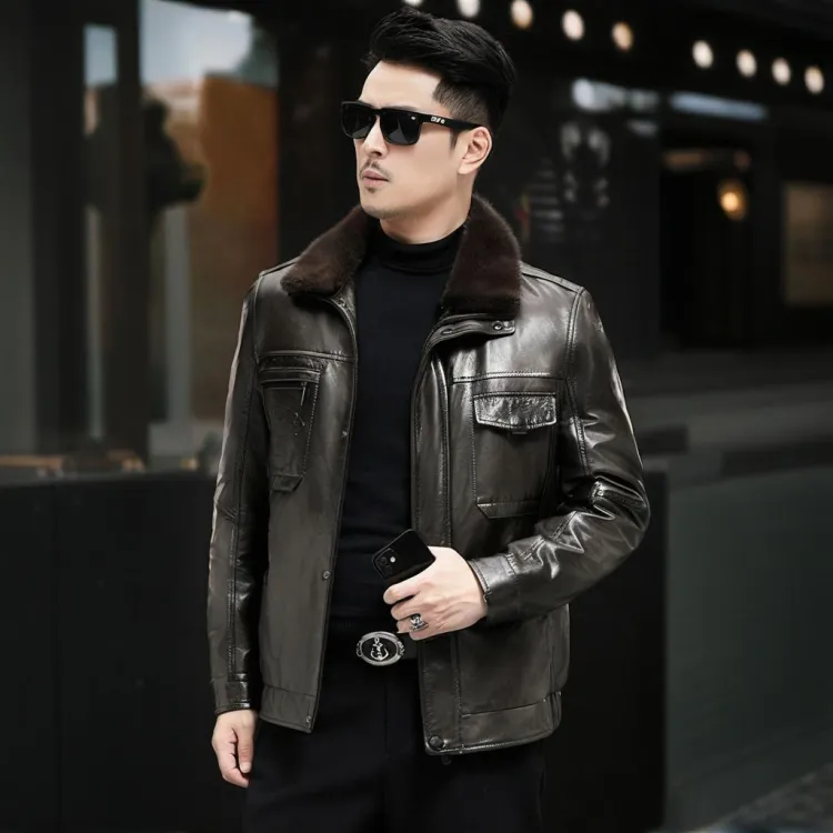 Devanro Натуральная кожа Куртка Мужская Классическая Черная