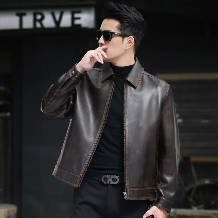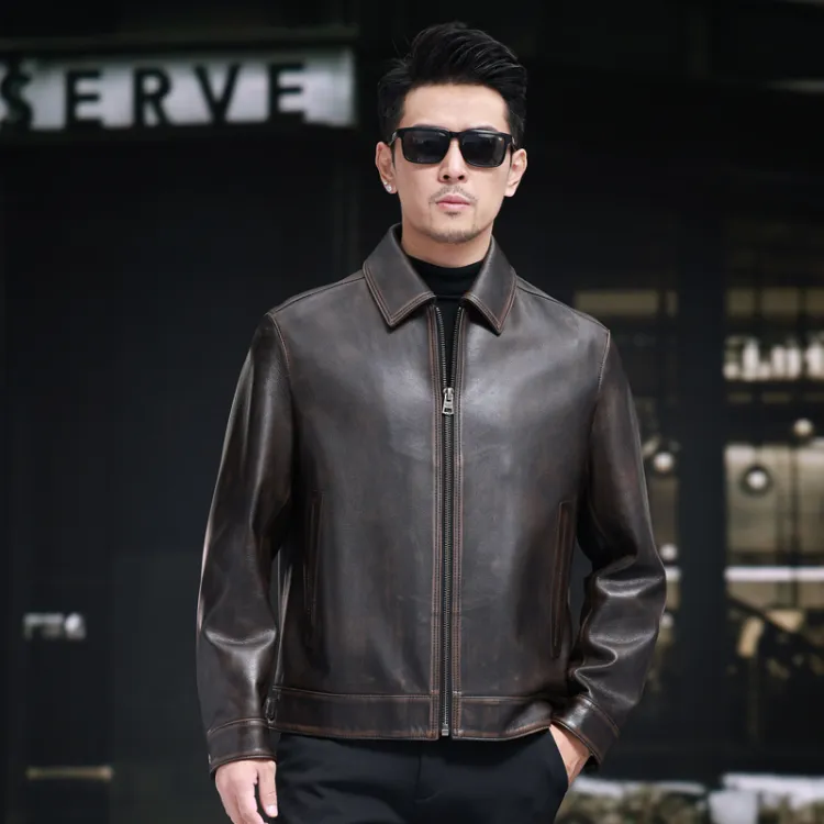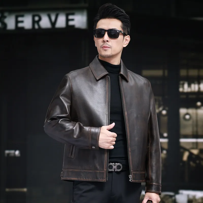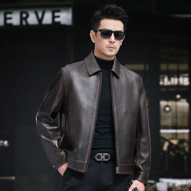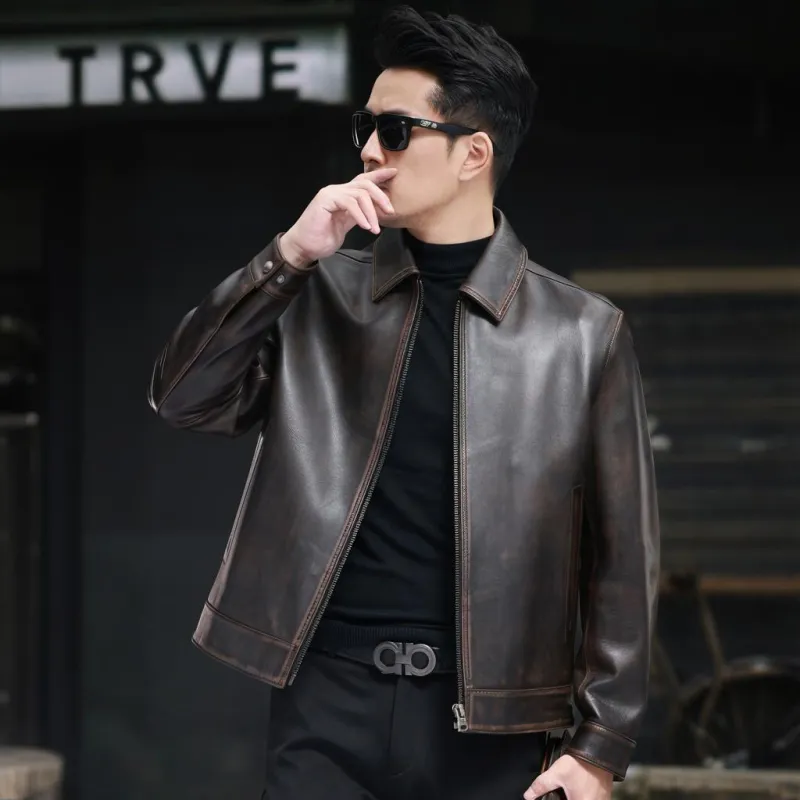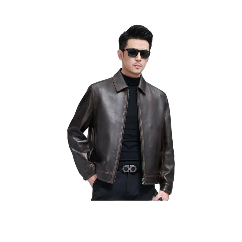 Devanro Натуральная кожа Куртка Мужская Темно-коричневая
