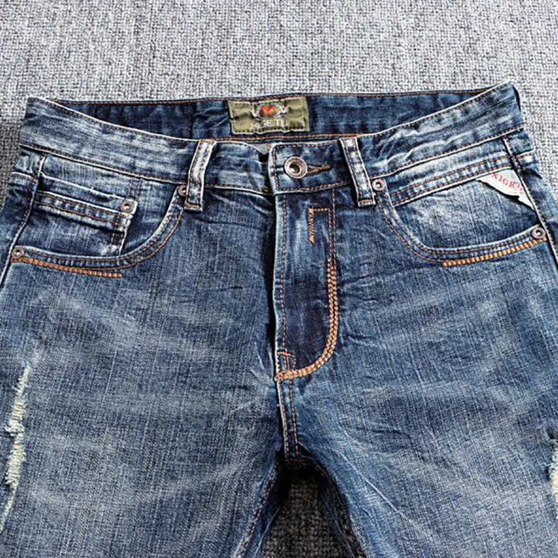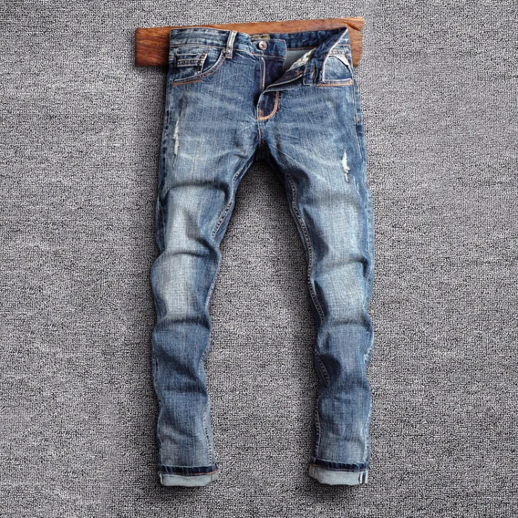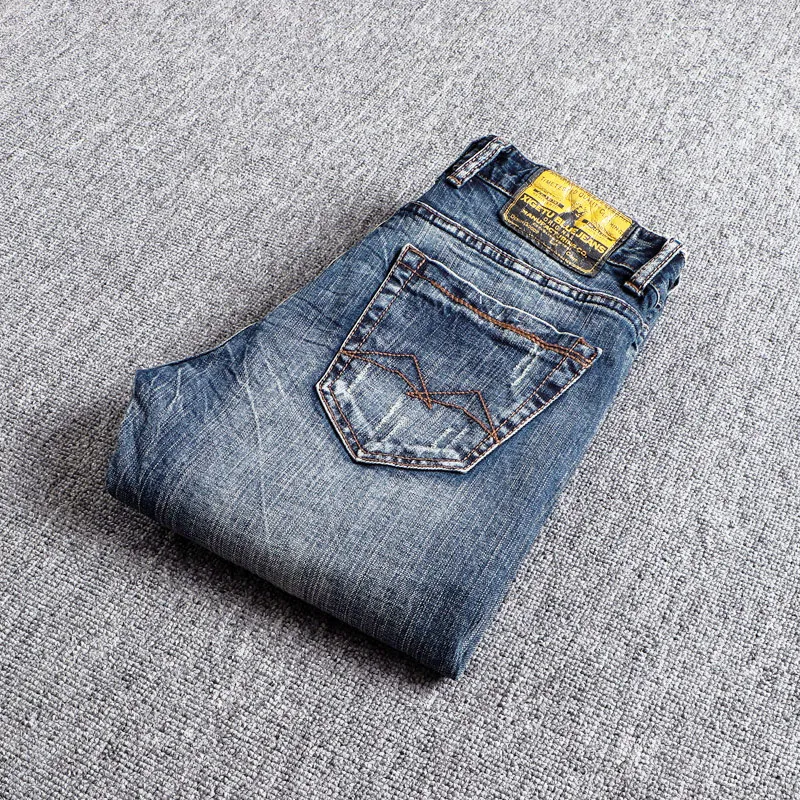 Devanro Винтажные синие мужские джинсы