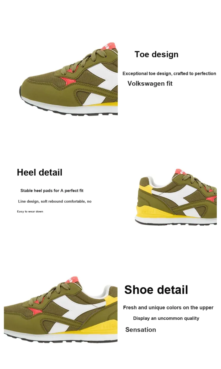 Diadora N.92 Slip-resistant Амортизация Устойчивость к истиранию Низкий топ KIDS Lifestyle Shoes Зеленый Желтый