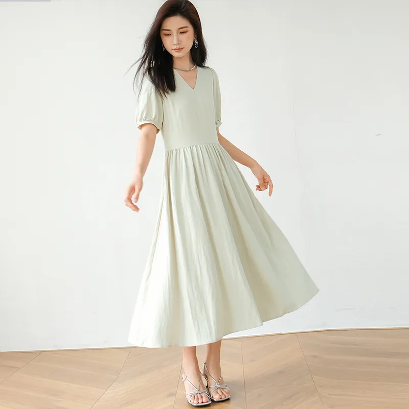 DianThia Короткий рукав Платье Женское Светло-серый зеленый