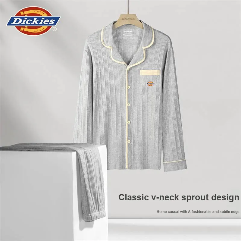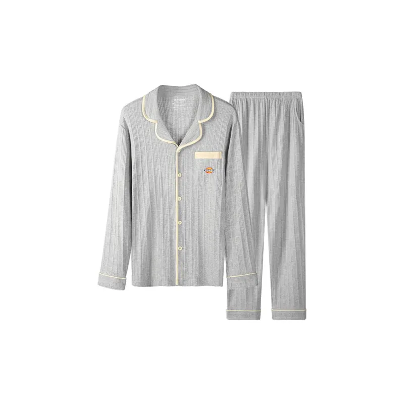Dickies Минималистский стиль Однотонный Удобный Отложной воротник Дружественный к коже Универсальный Комплект пижамы Мужской