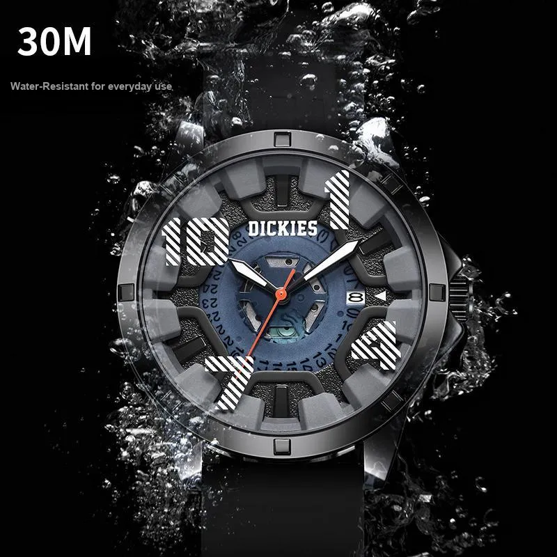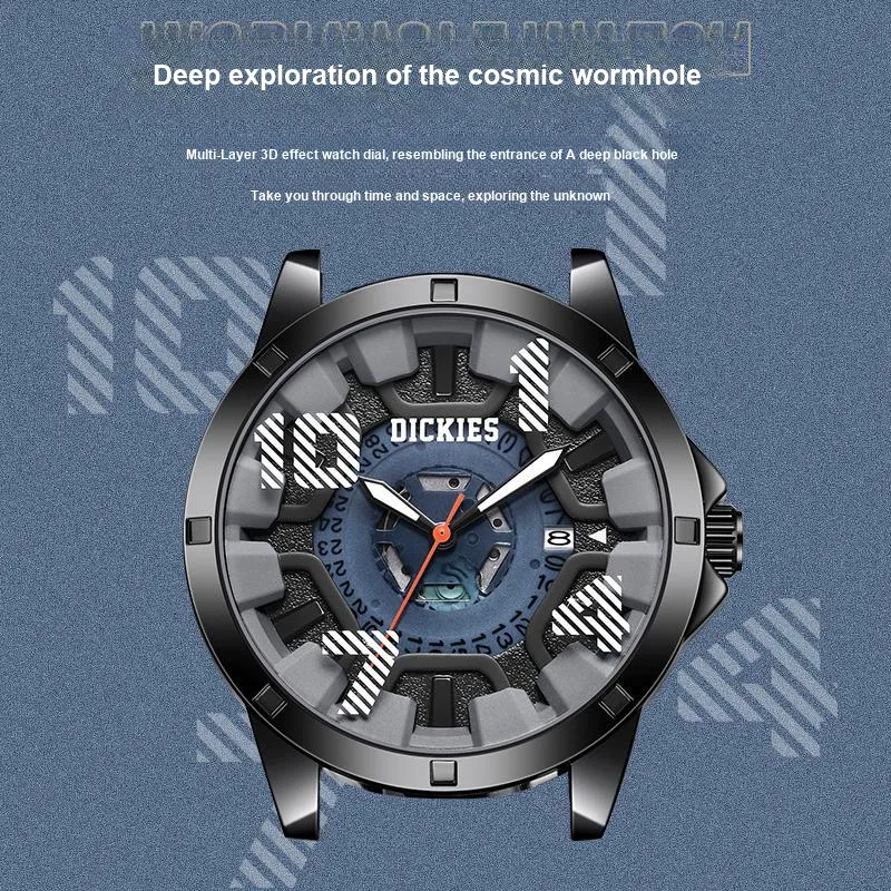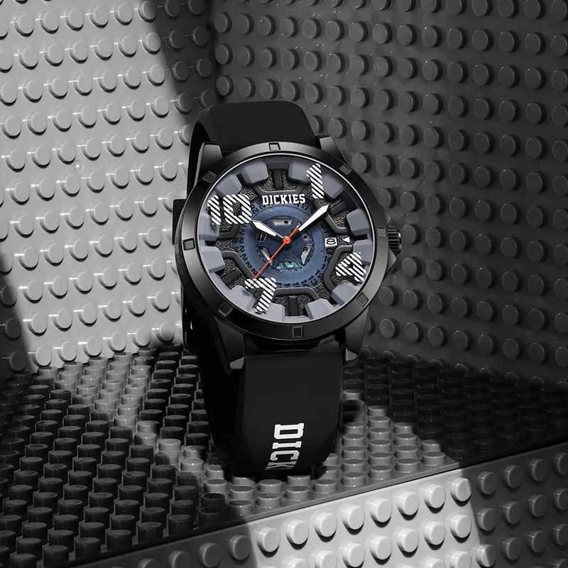 Dickies Wormhole Series Кварцевые наручные часы силиконовый ремешок черный циферблат унисекс