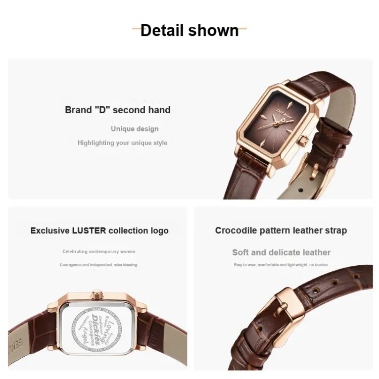 Dickies Наручные часы Кварцевый механизм Кожаный ремешок Черный циферблат Женские часы