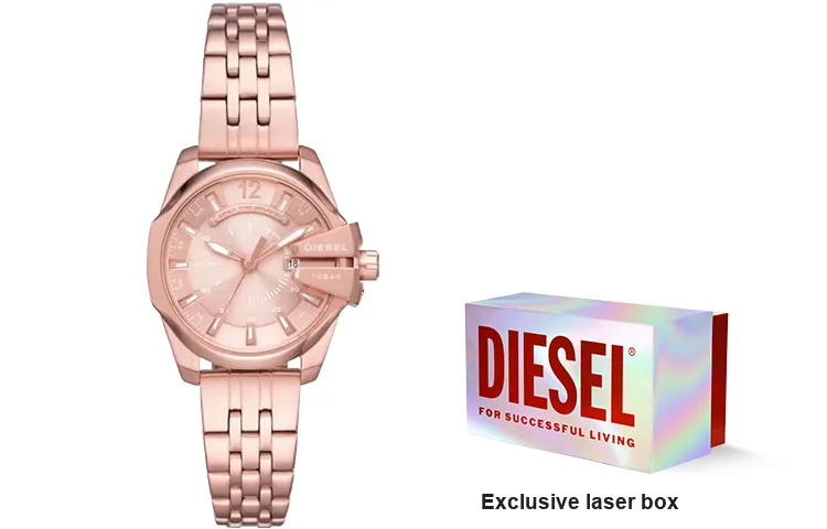 DIESEL Armor Series Кварцевые Наручные Часы Механизм Ремешок из Нержавеющей Стали Золотой Циферблат Женские Часы