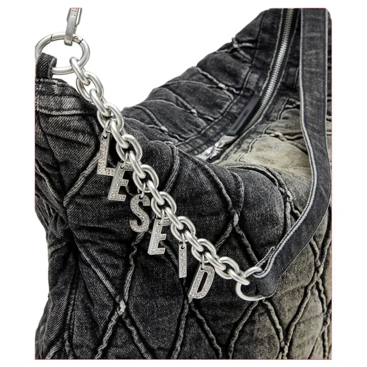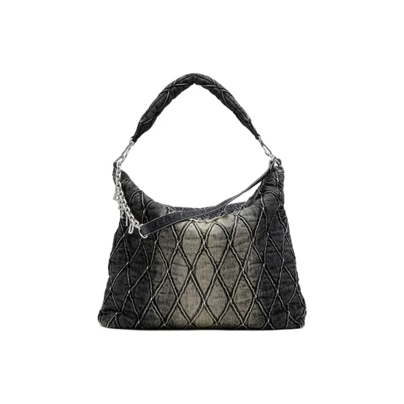 DIESEL Ткань Хобо Сумка Сумка через плечо Большая Женская Черная