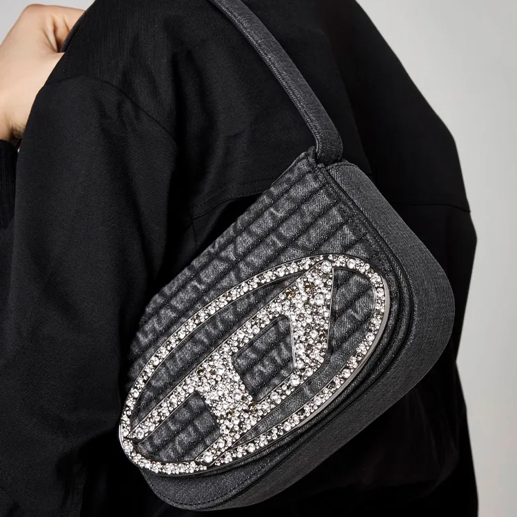 DIESEL Хлопок с коровьей кожей переносная сумка через плечо женская серая