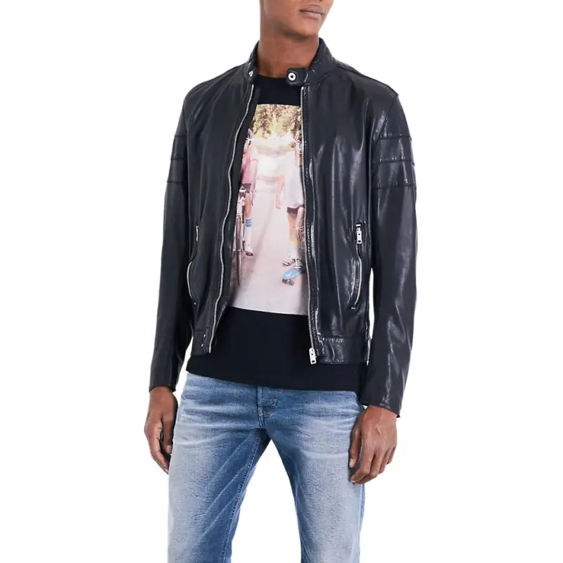 DIESEL Кожа Куртка Мужская Черная