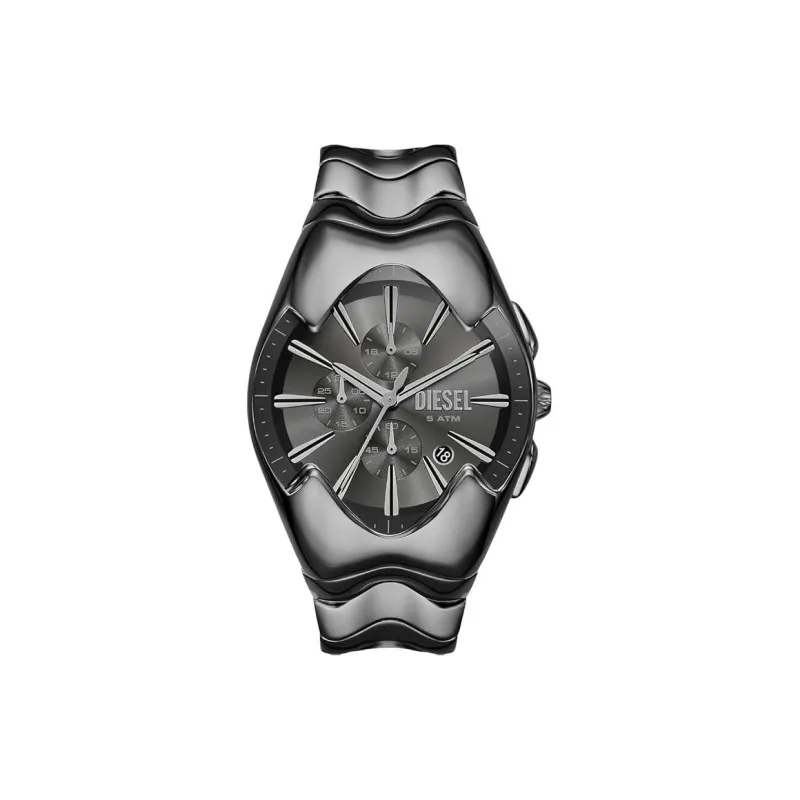 DIESEL Мужские часы Кварцевый механизм Ремешок из нержавеющей стали 44 мм Черный циферблат