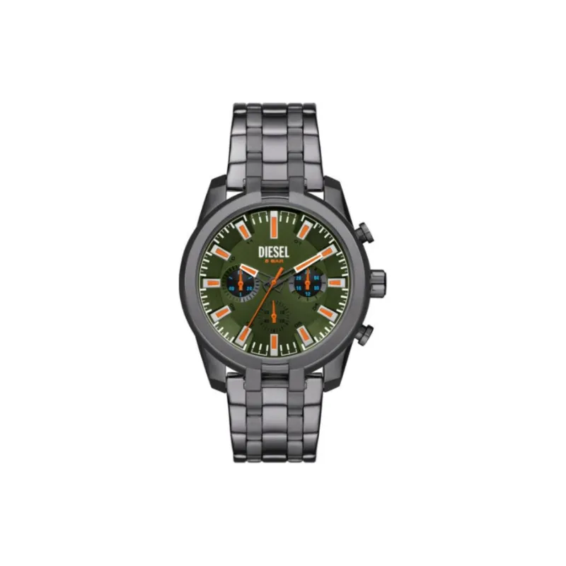 DIESEL Split Collection Мужские часы Кварцевый механизм Ремешок из нержавеющей стали 43 мм Зеленый циферблат