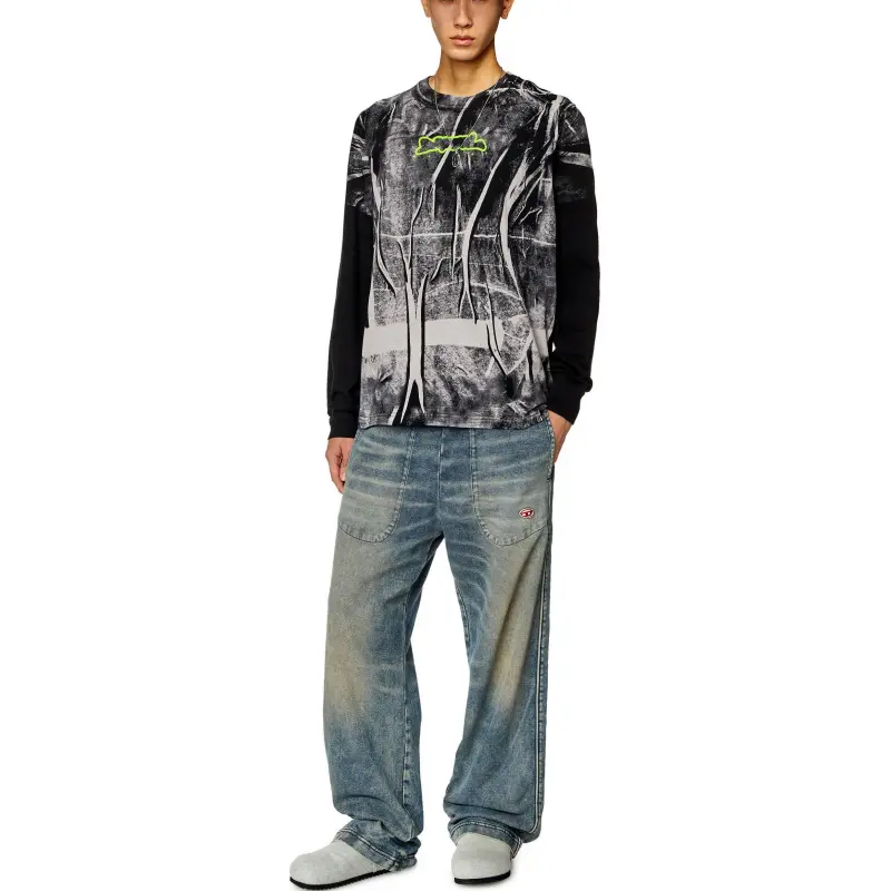 DIESEL T-Shirt Мужской Черный Белый