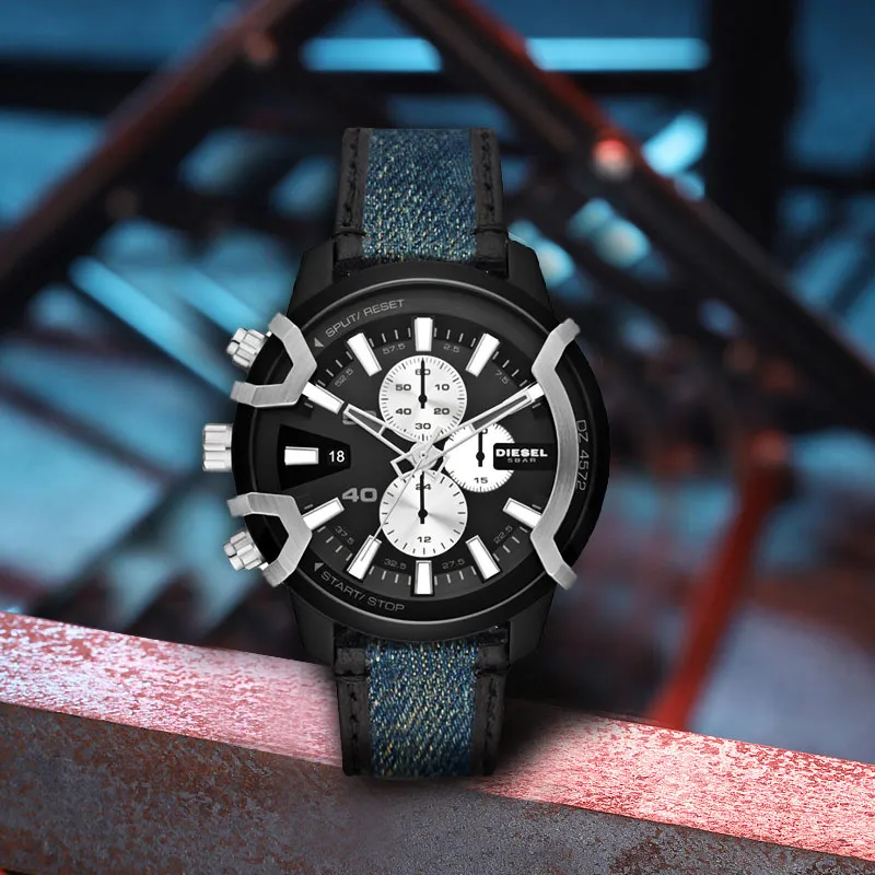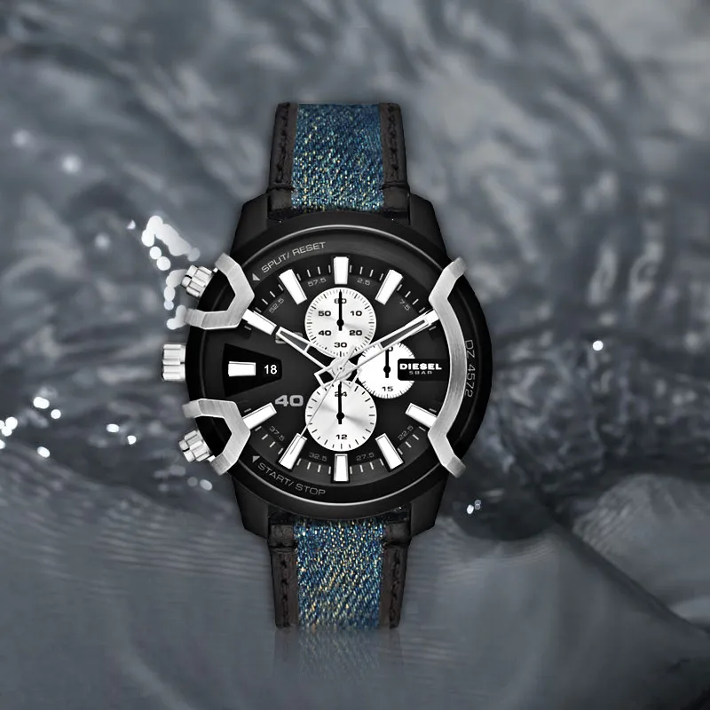 DIESEL Наручные часы Кварцевый механизм Кожаный ремешок 43 мм Черный циферблат Мужские часы DZ4572 NLP