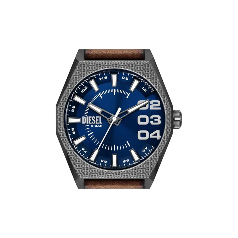 DIESEL Watch Кварцевый механизм Кожаный ремешок 44 мм Синий циферблат Унисекс