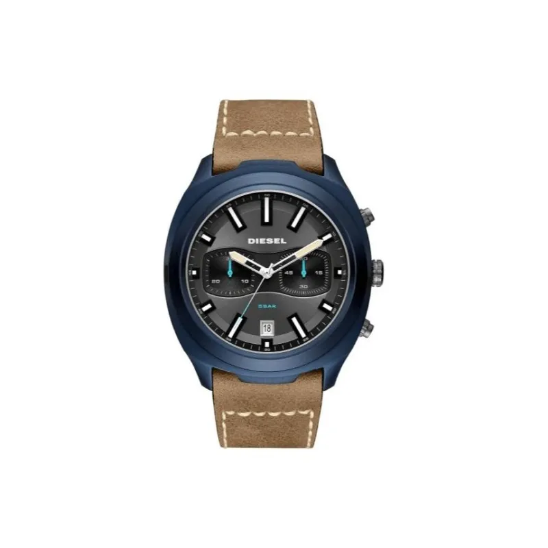 DIESEL Наручные часы Кварцевый механизм Кожаный ремешок Серый циферблат Мужские часы