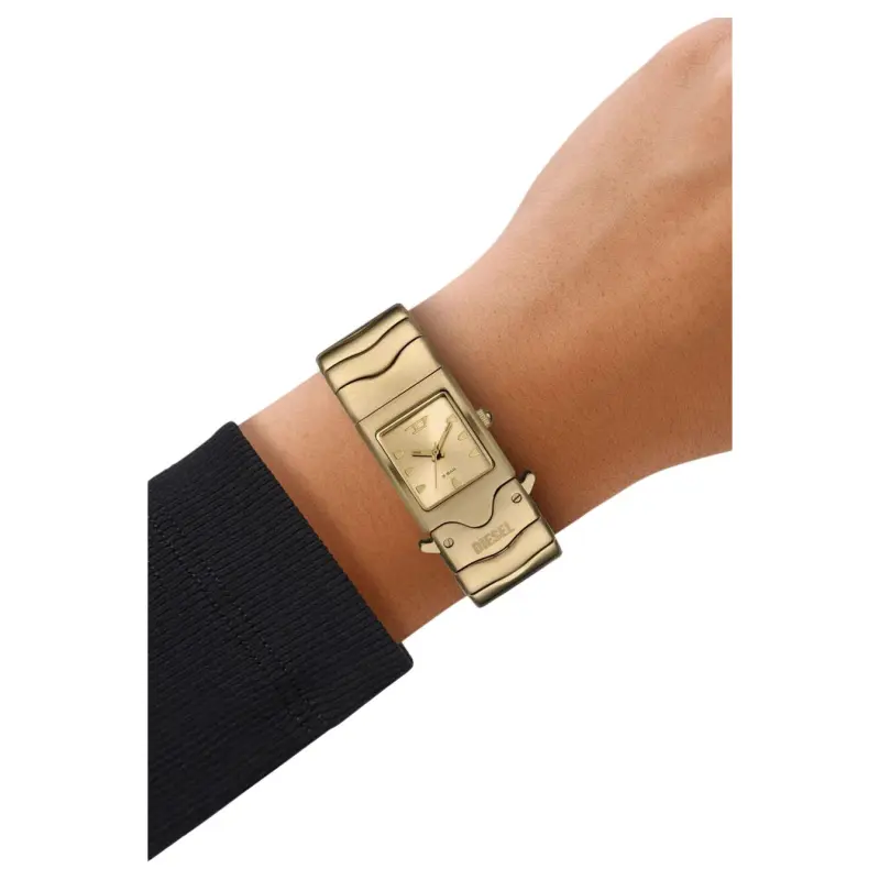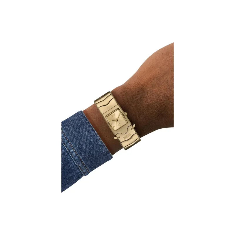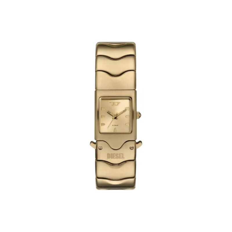DIESEL Женские часы Кварцевый механизм Ремешок из нержавеющей стали 22 мм Золотой циферблат