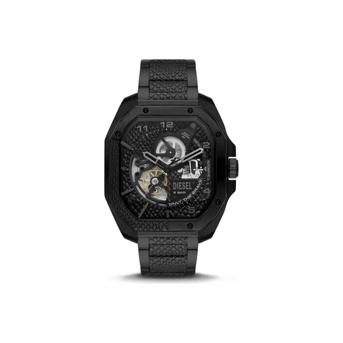DIESEL Мужские часы Кварцевый механизм Ремешок из нержавеющей стали 47 мм Черный циферблат