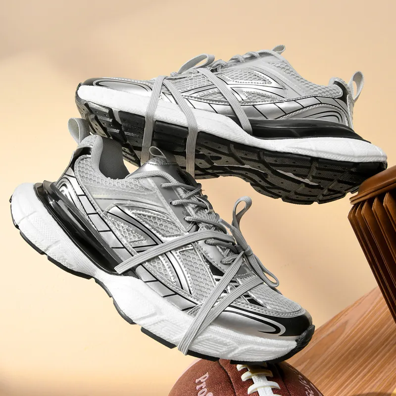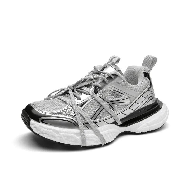 DIKENROK Износостойкий Дышащий Легкий Увеличивающий Высоту Низкий Топ Кроссовки с Толстой Подошвой Унисекс Серебряный