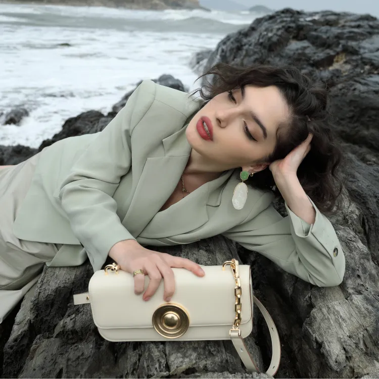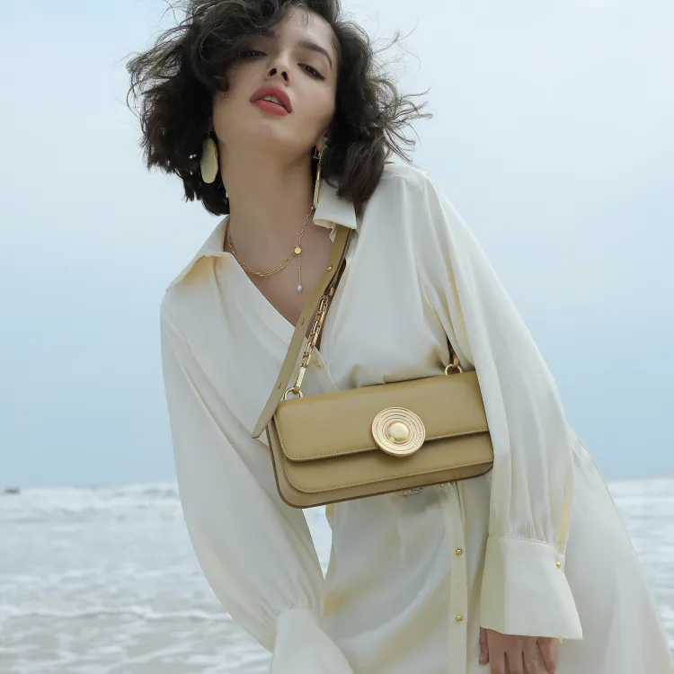 DILAKS Сумка через плечо из коровьей кожи среднего размера женская цвета молочный коктейль маккиато