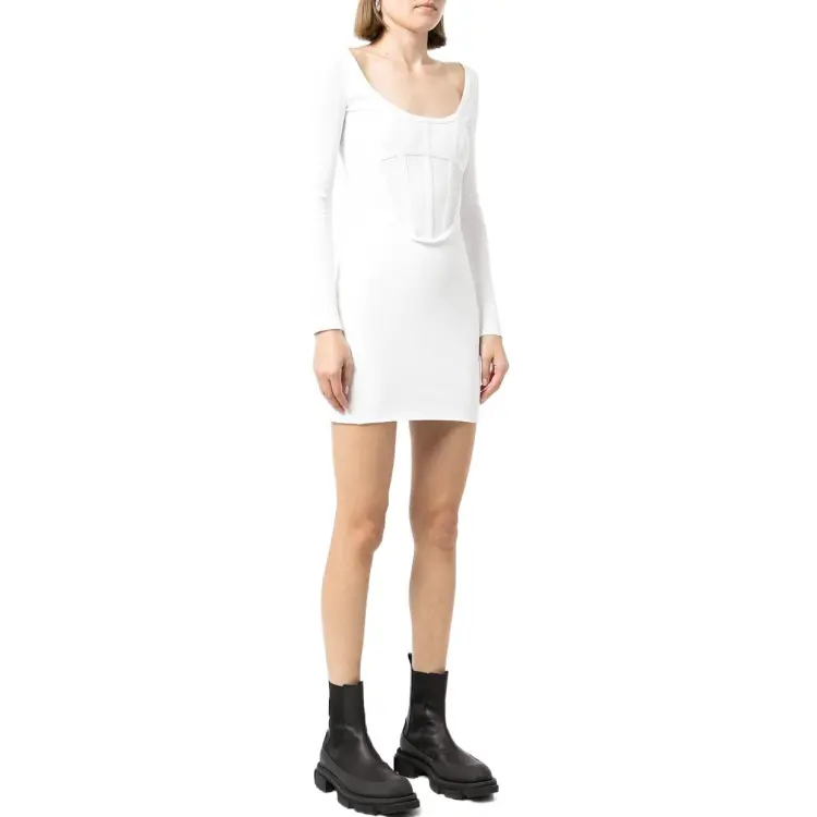 DION LEE Белое Женское Длинное Платье с Рукавами