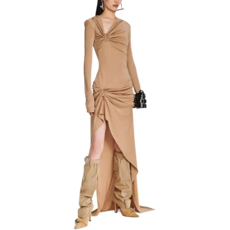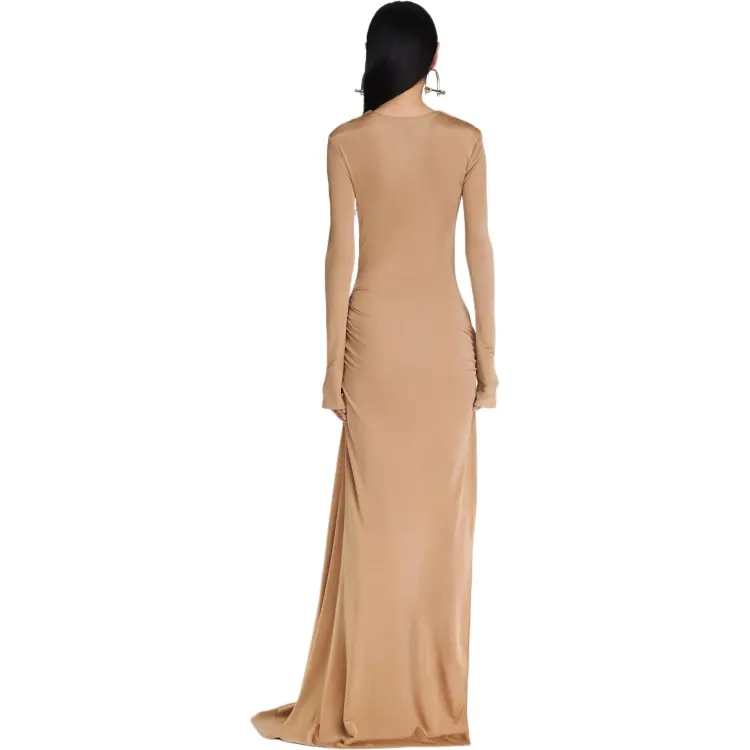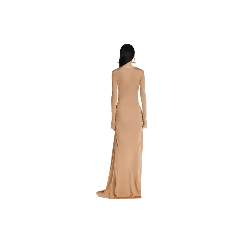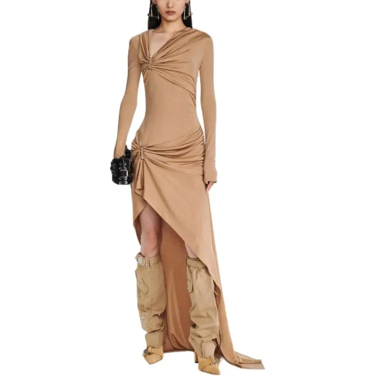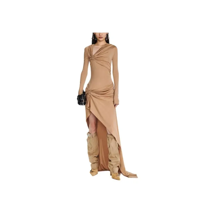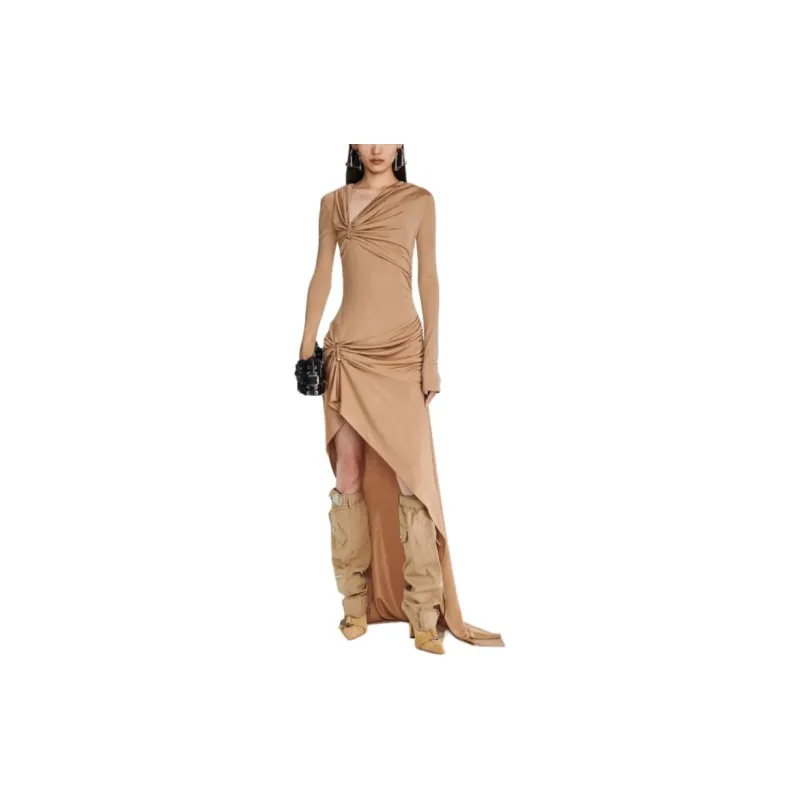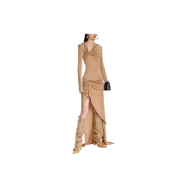 DION LEE SS24 GATHERED Bolt Long Sleeve Платье Длинный Sleeved Платье Женские Древесина Деревянный Цвет