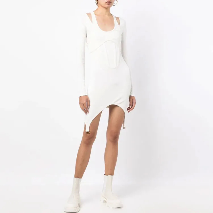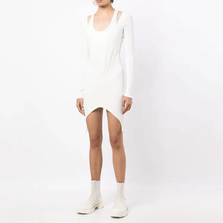 DION LEE Белое Женское Длинное Платье с Рукавами