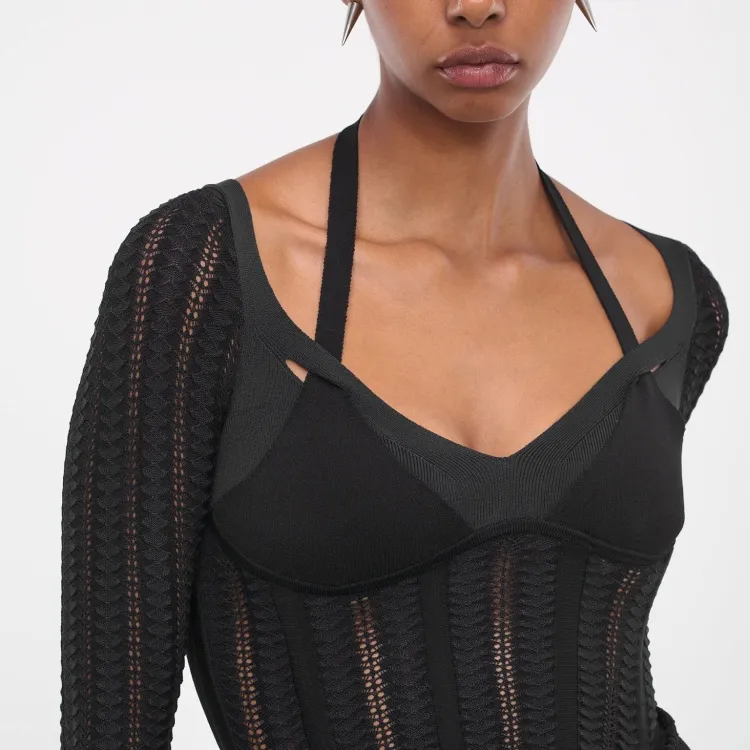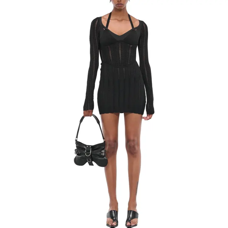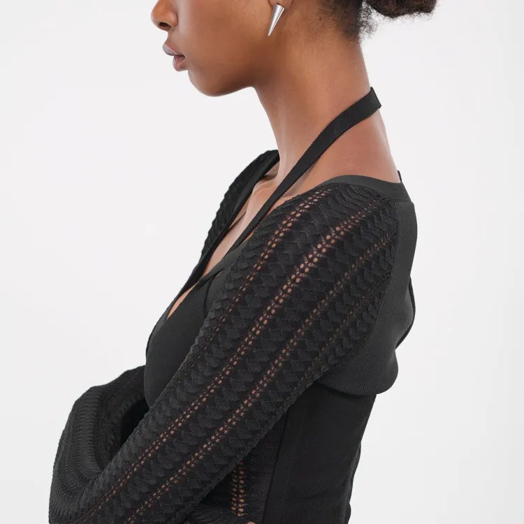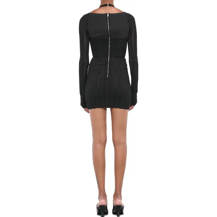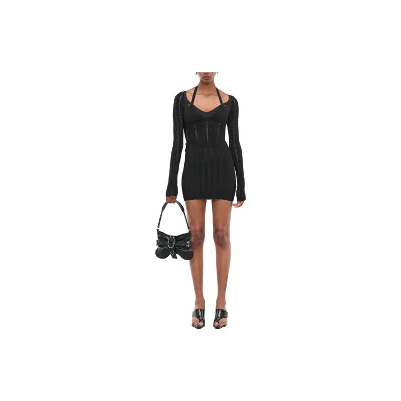 DION LEE Черное Женское Длинное Платье с Рукавами