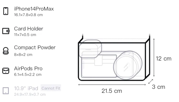 Д21,5*Ш3*В12см