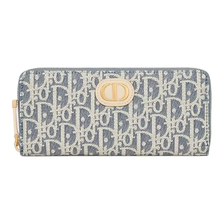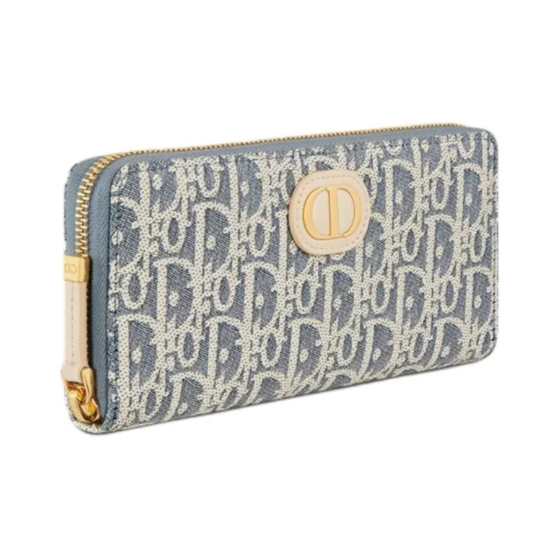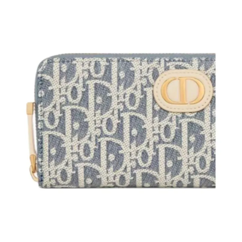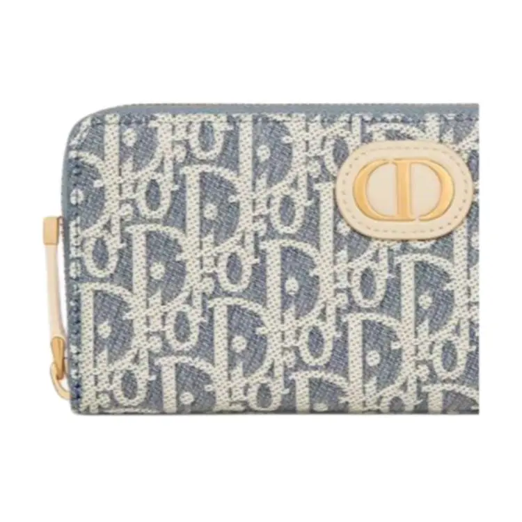 DIOR 30 Montaigne Хлопок Телячья кожа Кошелек Женский Синий