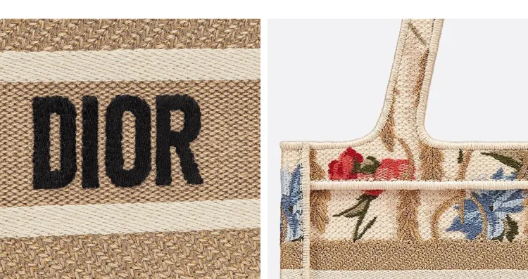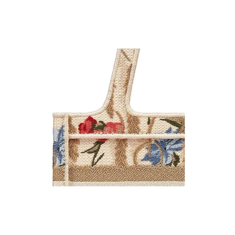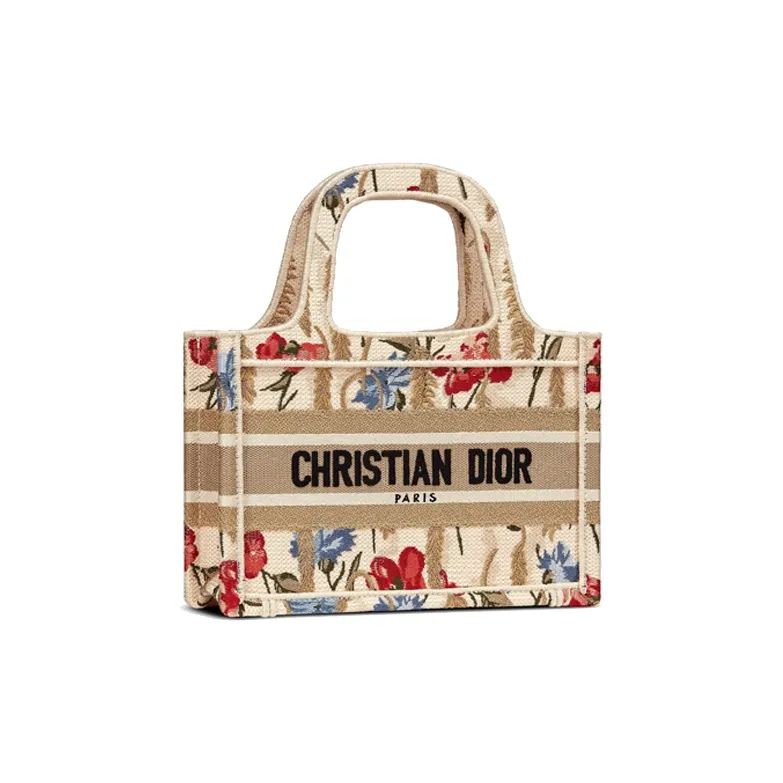 DIOR BookTote Вышивка Холст Сумка-тоут Сумка для покупок Мини Сумка Женская Многоцветная Бежевая