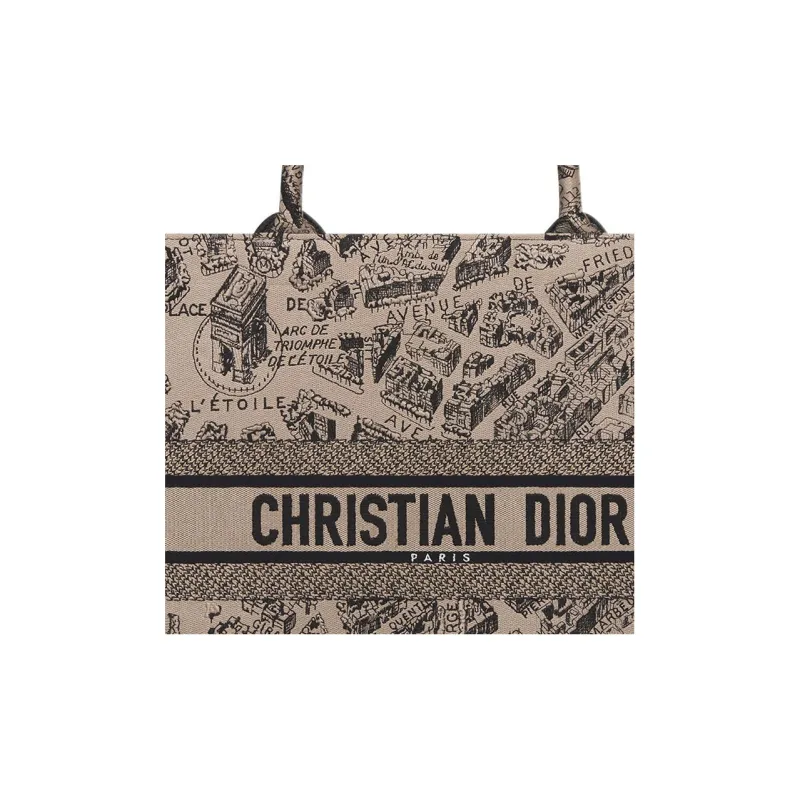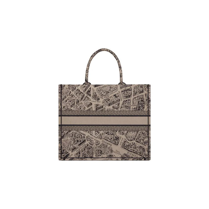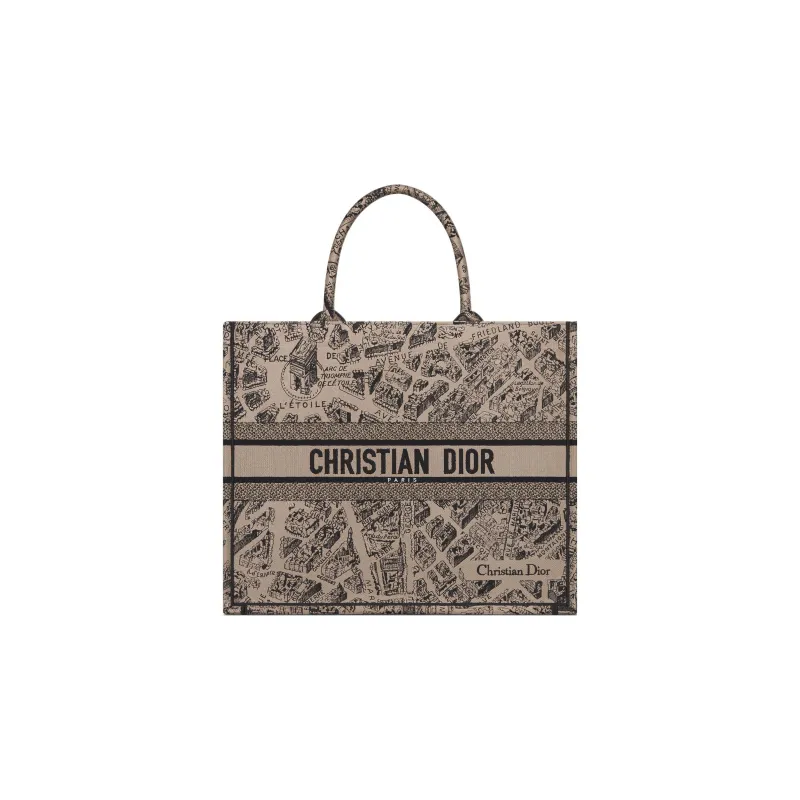 DIOR BookTote Вышивка Сумка-тоут Сумка для покупок Сумка Большая Женская Бежевая Черная