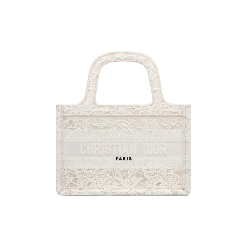 DIOR BookTote Вышивка Тоут Сумка Сумка для покупок Сумка Мини Women's White