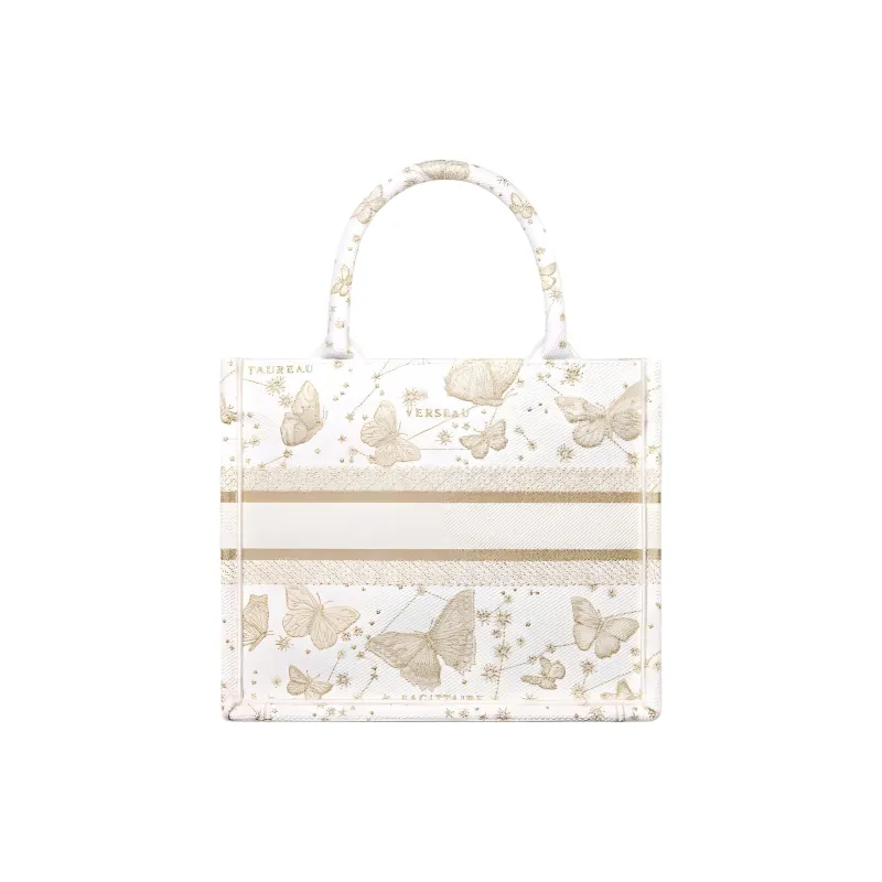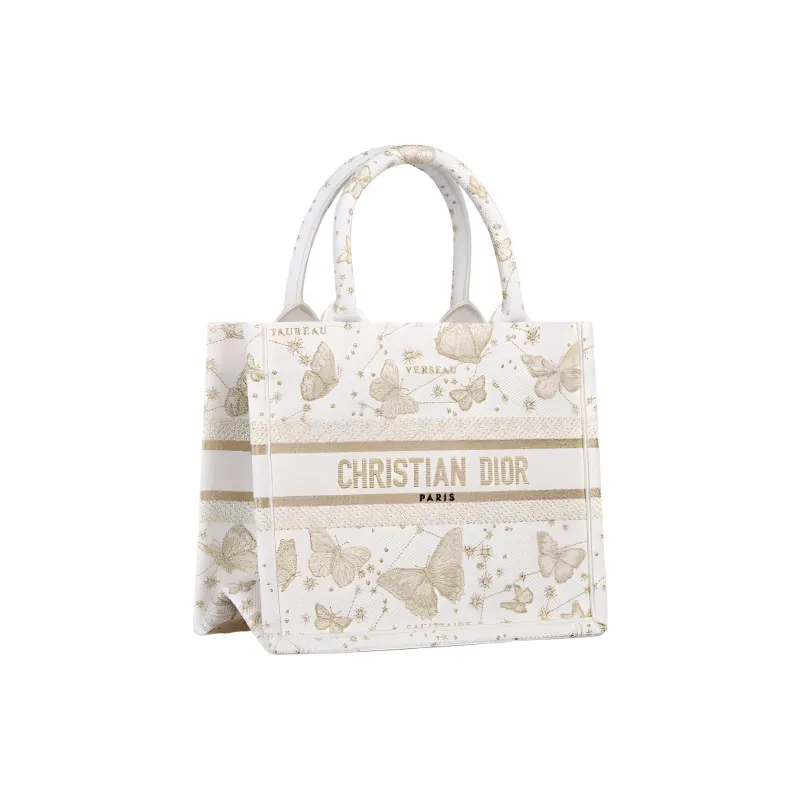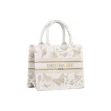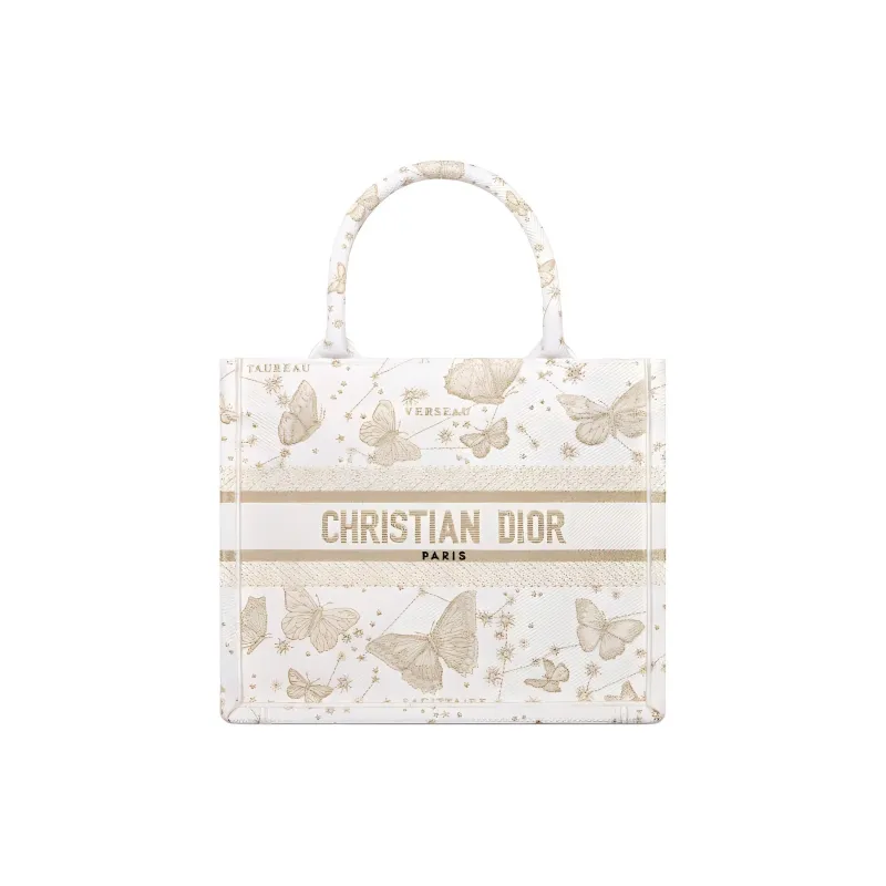 DIOR BookTote Вышивка Тоут Сумка Сумка для покупок Сумка Маленькая Женская Золотая и Белая