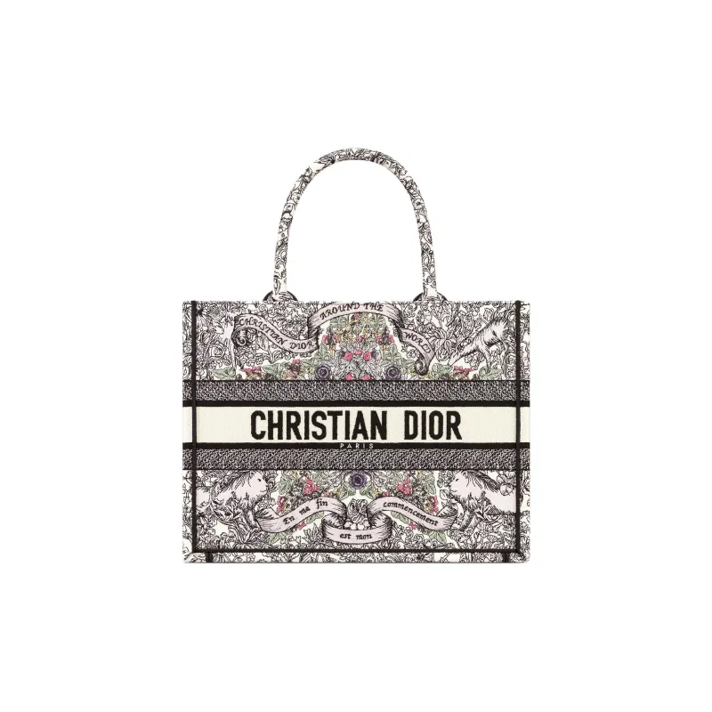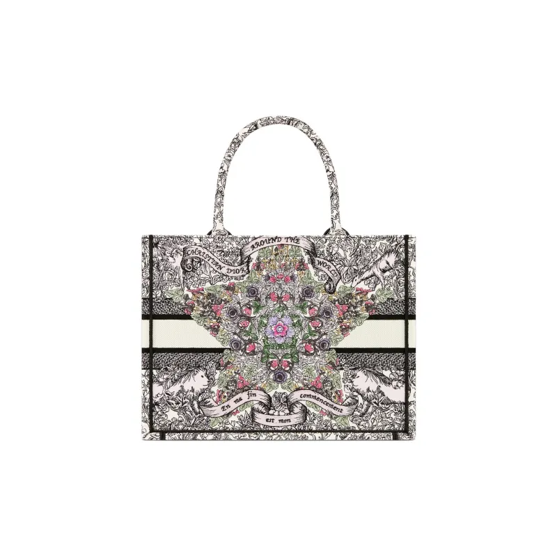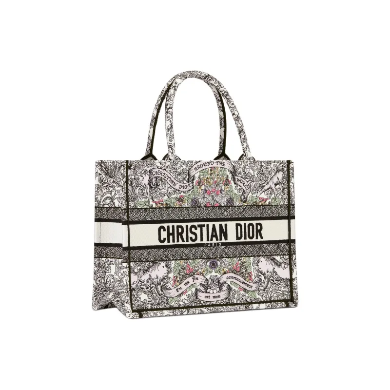 DIOR BookTote Ткань Тоут Сумка Сумка для покупок Сумка среднего размера Женская Многоцветная