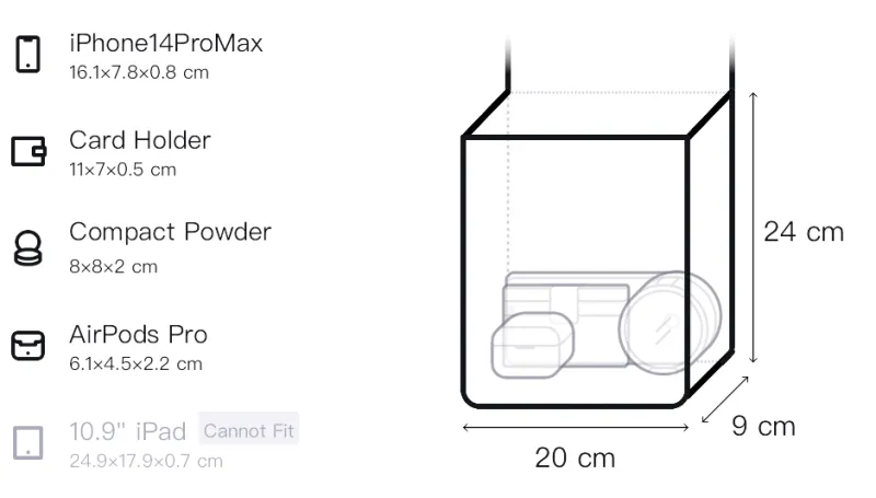 Д20*Ш9*В24см