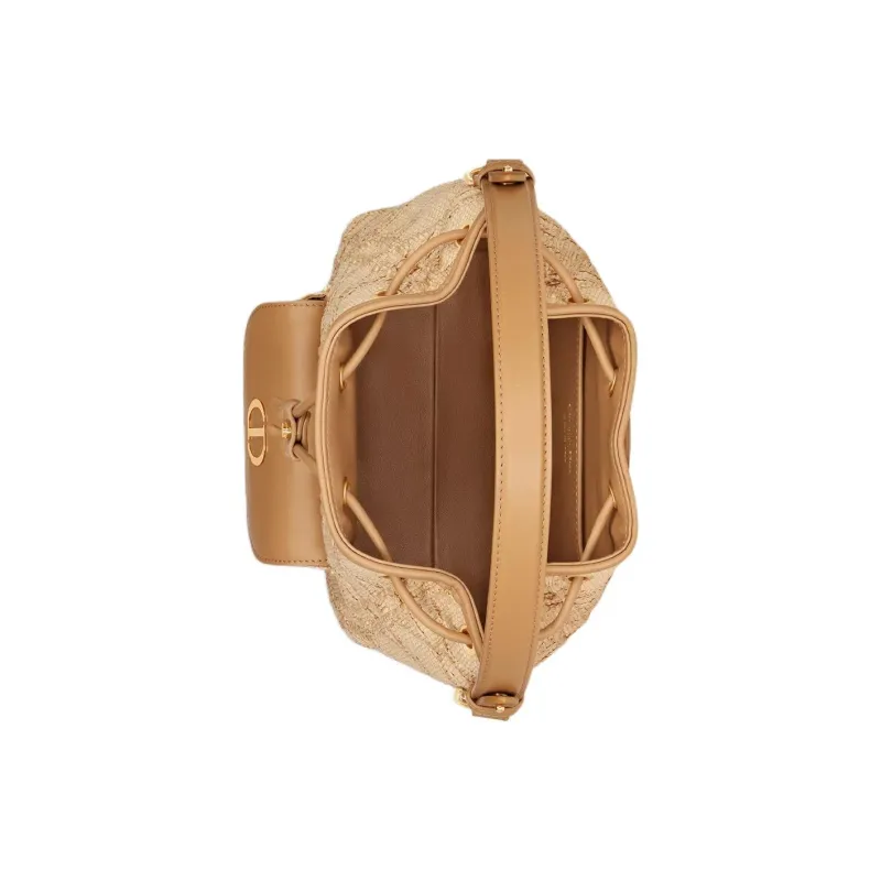 DIOR Caro Коровья кожа Ведрообразная сумка Сумка через плечо Сумка Маленькая Женская Натуральная Рафия Трава Effect