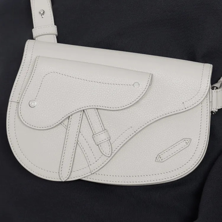 DIOR Корова Кожа Saddle Сумка Сумка через плечо Бананка Sling Сумка Мужская Серый Белый