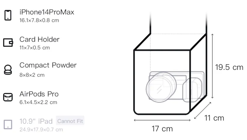 Длина 17 см * Ширина 11,5 см * Высота 19,5 см