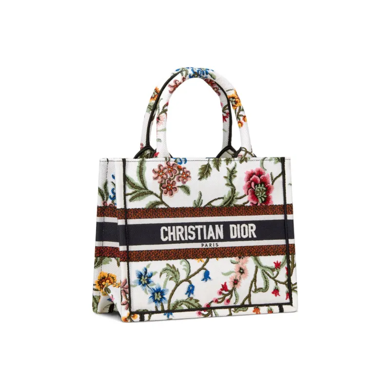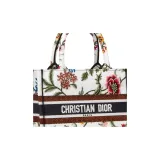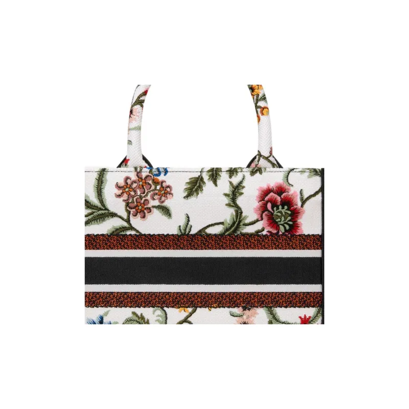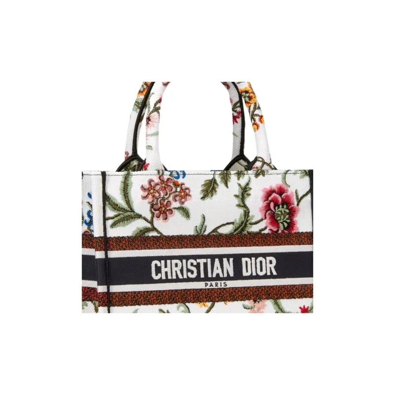 DIOR Вышивка Тоут Сумка Сумка для покупок Сумка Маленькая Женская Белая Многоцветная