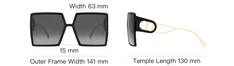 DIOR Пластиковая оправа Квадратные Солнцезащитные очки Женские Черные