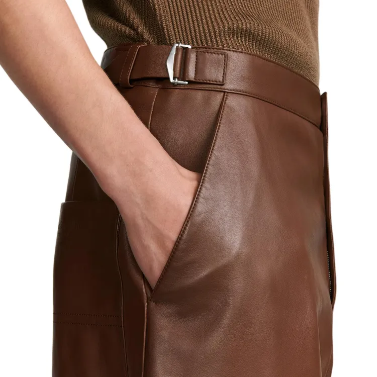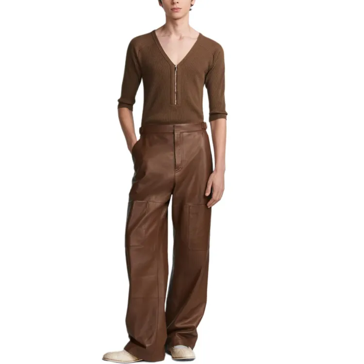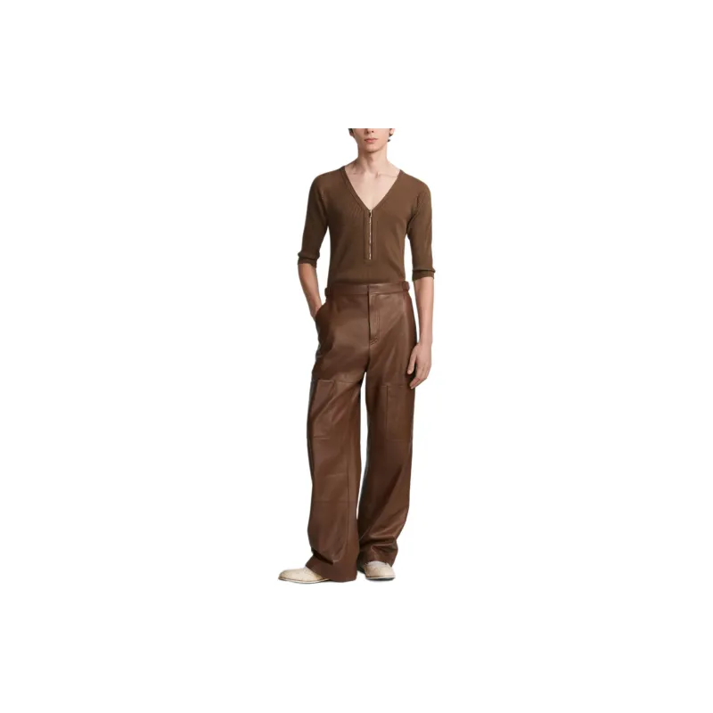 DIOR FW24 Кожаные брюки Мужские Коричневые