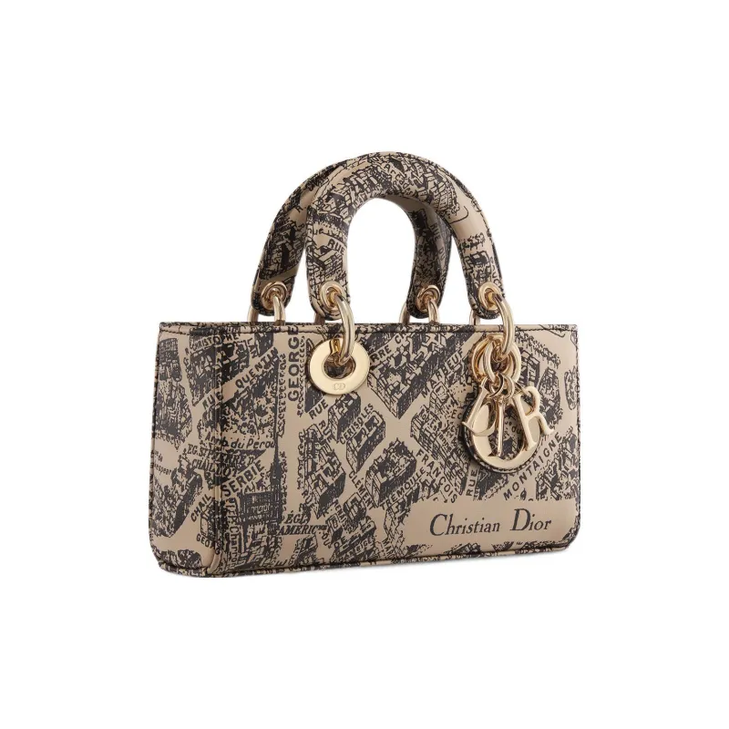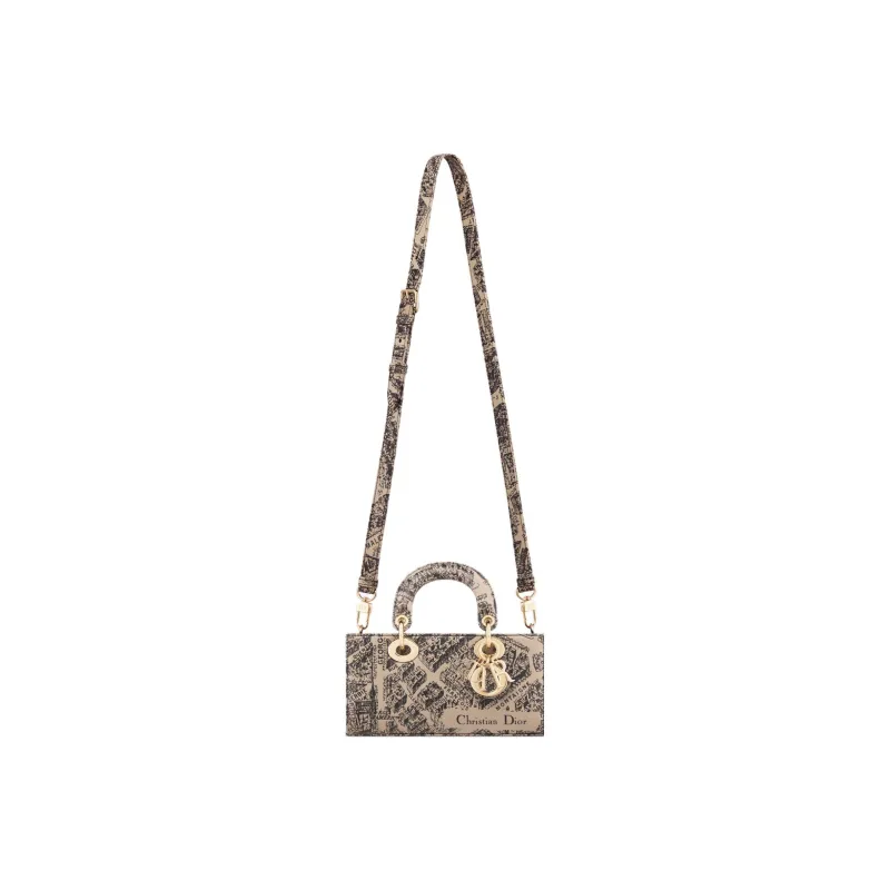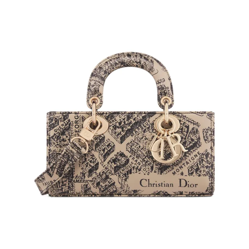 DIOR LADY D JOY Корова Кожа Сумка Lady Dior Сумка через плечо Сумка Маленькая Женская Бежевая Черная