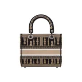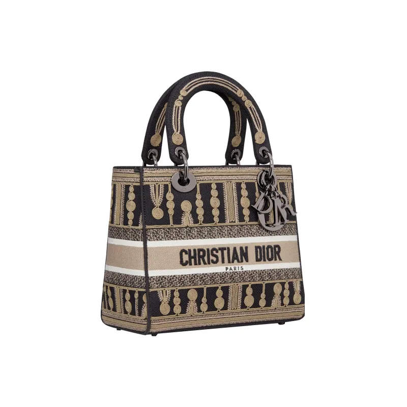 DIOR LADY D Лайт Вышивка Сумка Lady Dior Сумка через плечо Сумка Средний Женские Коричневый черный
