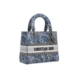 DIOR LADY D Лайт Вышивка Сумка Lady Dior Tote Bag Shopping Bag Medium Women's Blue